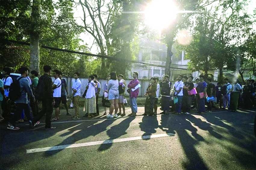 ពលរដ្ឋមីយ៉ាន់ម៉ាជាង ១ ០០០ នាក់ បានទៅតម្រង់ជួរនៅមុខស្ថានទូតរបស់ប្រទេសថៃ ប្រចាំនៅទីក្រុងយ៉ាំងហ្គន កាលពីថ្ងៃទី១៦ ខែកុម្ភ: នៅពេលដែលពួកគេព្យាយាមស្វែងរកឱកាសក្នុងការចាកចេញពីប្រទេស បន្ទាប់ពីរបបកាន់កាប់ដោយយោធា ចេញច្បាប់តម្រូវឲ្យចូលរួមក្នុងកាតព្វកិច្ចបម្រើយោធា។ នេះបើតាមការចុះផ្សាយពីទីភ្នាក់ងារសារព័ត៌មាន AFP។