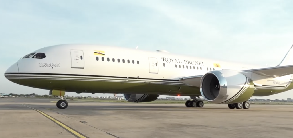 គួរឲ្យដឹងថាយន្តហោះដែលព្រះមហាក្សត្របានបើកមកកាលនោះ ជាប្រភេទ Boeing 767 គឺមិនសូវមានអ្នកប្រើប្រាស់ទំលំទូលាយឡើយ ហើយអ្វីដែលពិសេសគឺទ្រង់ជាម្ចាស់នៃយន្តហោះផ្ទាល់ខ្លួនដែលមានតម្លៃថ្លៃបំផុតលើលោក ដោយប្រភពធំៗជាច្រើនរាយការណ៍ថា ទ្រង់បានយកមកកែលំអទាំងរចនាបថខាងក្នុង និងក្រៅ ស្រោបដោយមាសផង រហូតធ្វើឲ្យតម្លៃយន្តហោះមួយគ្រឿងនេះឡើងដល់ជិត ៤០០ លានដុល្លារ និងទទួលបានរហស្សនាមថា “The Floating Palace” ថែមទៀតផង។
