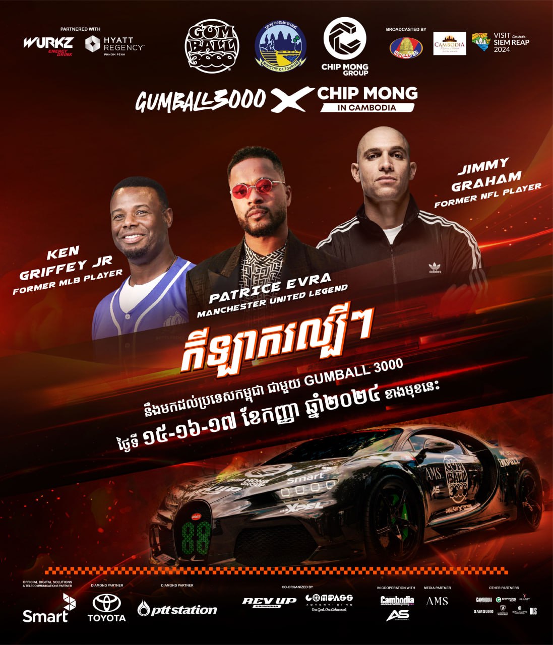 ក្នុងនោះដែរគេសង្កេតឃើញវីរបុរសក្រុមបិសាចក្រហម Manchester United គឺលោក Patrice Evra រួមជាមួយអតីតកីឡាករ Baseball លោក Ken Griffey Jr. និងអតីតកីឡាករបាល់ឱប លោក Jimmy Graham ក៏បង្ហាញវត្តមានក្នុងព្រឹត្តិការណ៍ Gumball 3000 នៅកម្ពុជា ផងដែរ។