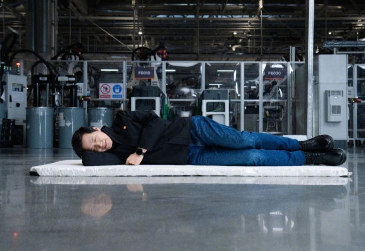 តាមរយ:ការបង្ហោះសារនៅក្នុងបណ្តាញសង្គម X កាលពីពេលថ្មីៗនេះ មេធំរបស់ក្រុមហ៊ុន Xiaomi បានចែករំលែករូបភាពមួយកន្លឹកដែលលោកកំពុងគេងនៅលើកម្រាលឥដ្ឋក្នុងរោងចក្រ ដោយបានសរសេរថា៖”អ្នកនិយមលេងអ៊ីនធឺណិត បានជំរុញឲ្យខ្ញុំទៅរោងចក្រដើម្បីពន្លឿនការផលិត។ តាមពិតទៅ ខ្ញុំឧស្សាហ៍ទៅទីនោះញឹកញាប់ណាស់។ ពេលមួយ ខ្ញុំបានទៅដល់រោងចក្រនៅពេលព្រឹកព្រលឹមពេក ហើយបានបន្តគេងនៅកម្រាលឥដ្ឋក្នុងរោងចក្រតែម្តង។ ប៉ុន្តែអ្វីដែលនឹកស្មានមិនដល់ ពេលដែលខ្ញុំភ្ញាក់ឡើង រថយន្តចំនួន ១សែនគ្រឿង ត្រូវបានផលិតបញ្ចប់រួចរាល់ទៅហើយ”។