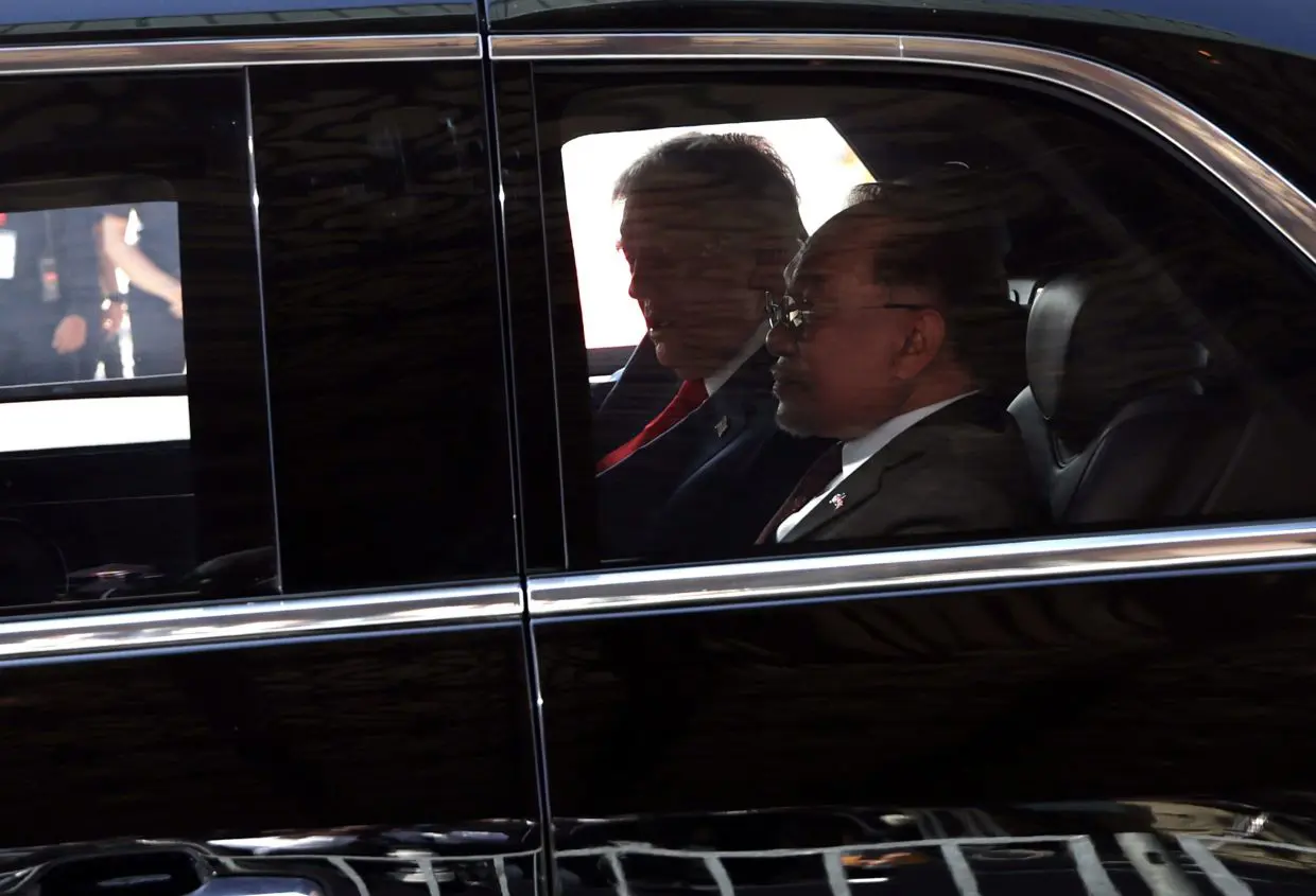 នាយករដ្ឋមន្ត្រីម៉ាឡេស៊ី លោក Anwar Ibrahim បានជួបពិភាក្សាយ៉ាងសប្បាយរីករាយជាមួយប្រធានាធិបតីអាមេរិក លោក ដូណាល់ ត្រាំ នៅមុនពេលនៃការចុះហត្ថលេខាលើកិច្ចព្រមព្រៀងសន្តិភាពរួមគ្នារវាងកម្ពូជា និងថៃ នាពេលថ្មីៗនេះ។