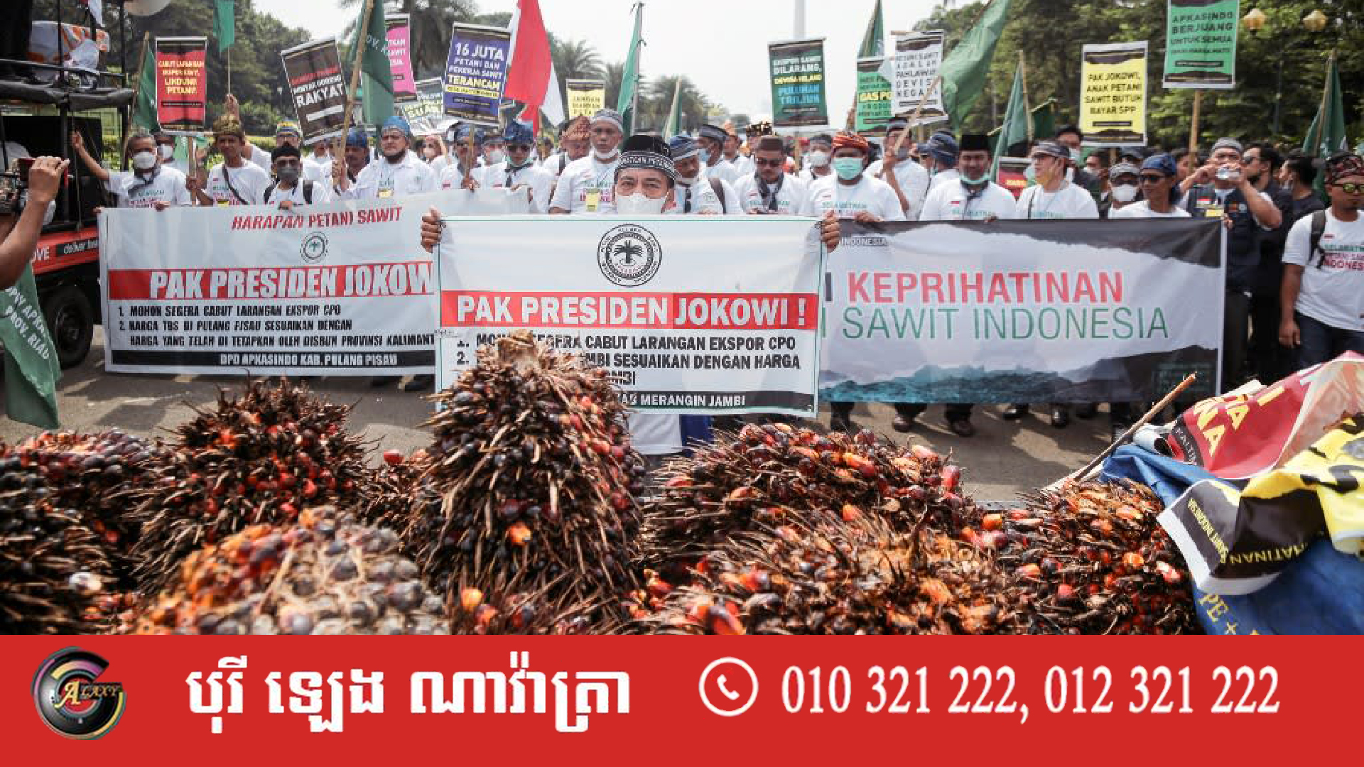 កសិករខ្នាតតូចរបស់ឥណ្ឌូនេស៊ី រាប់រយនាក់ បានចេញធ្វើបាតុកម្ម នៅរដ្ឋធានីហ្សាកាតា និងនៅកន្លែងផ្សេងទៀតក្នុងប្រទេស ដោយទាមទារឱ្យរដ្ឋាភិបាលបញ្ចប់ការហាមឃាត់ លើការនាំចេញប្រេងដូង ដែលបានធ្វើឱ្យប៉ះពាល់ដល់ប្រាក់ចំណូលរបស់ពួកគេ ។