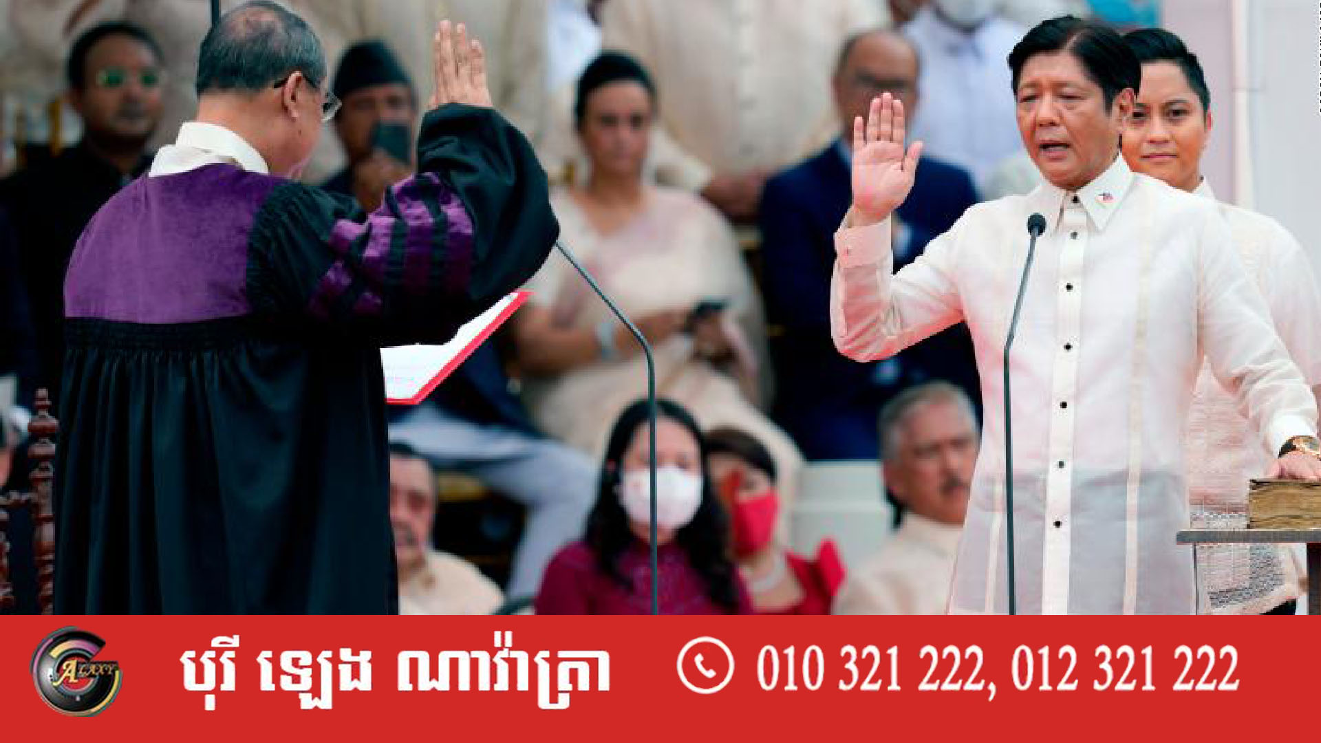 លោក Ferdinand Marcos Jr បានស្បថចូលកាន់តំណែងជាប្រធានាធិបតីទី ១៧ របស់ប្រទេសហ្វីលីពីន នៅថ្ងៃព្រហស្បតិ៍នេះ ទី ៣០ ខែមិថុនានេះ ដោយចូលជំនួសតំណែងរបស់ប្រធានាធិបតីផុតអាណត្តិ លោក Rodrigo Duterte ។