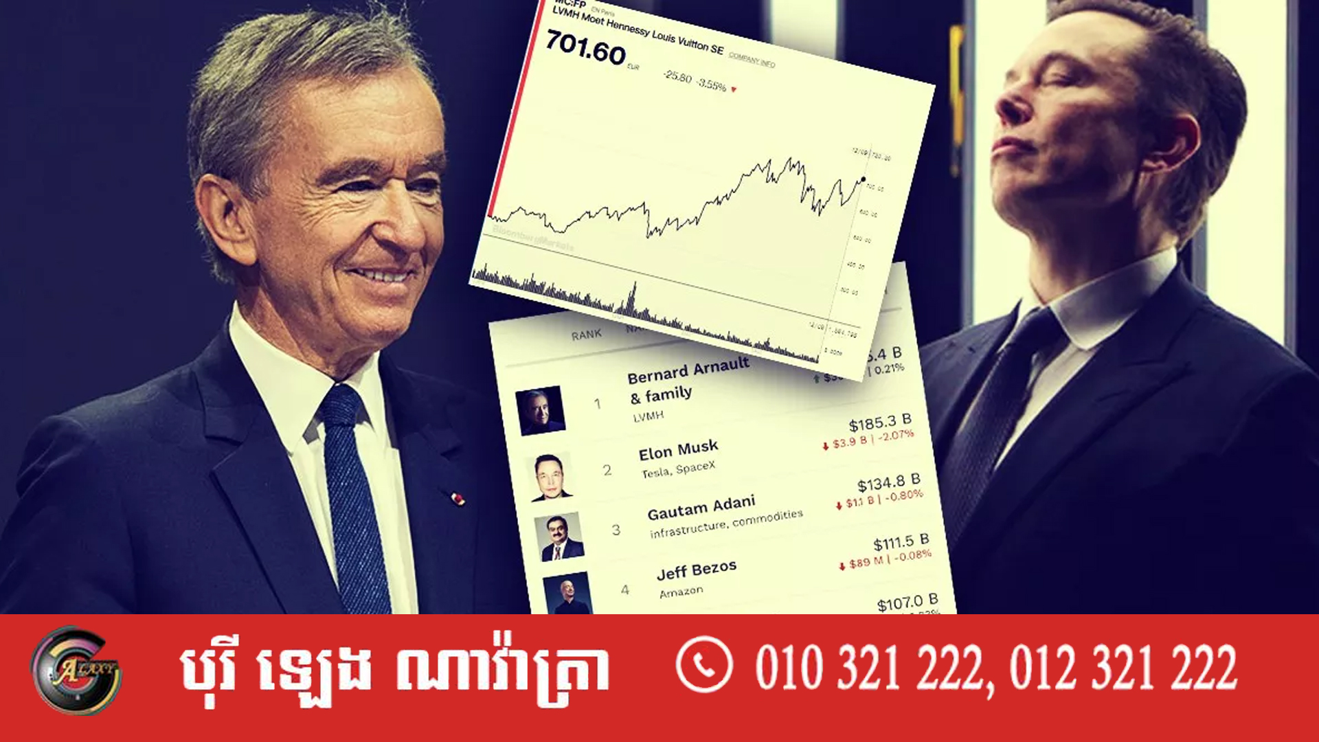 ការដណ្ដើមតំណែងជាមហាសេដ្ឋីមានបំផុតលើលោក មានសភាពក្ដៅគគុកនៅក្នុងសប្ដាហ៍នេះ ប៉ុន្តែអ្នកដែលទទួលបានជ័យជំនះគឺ មហាសេដ្ឋីបារាំង Bernard Arnault ដែលបច្ចុប្បន្នមានទ្រព្យសម្បត្តិវ៉ាដាច់ មេធំ Elon Musk ជាង ១០ ពាន់លានដុល្លារ។