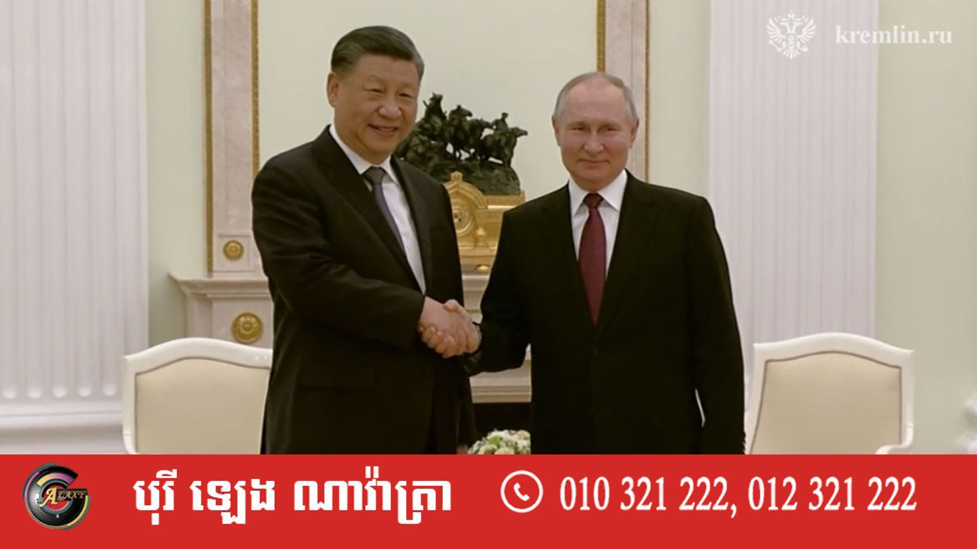 សូមជម្រាបដែរថា ប្រធានាធិបតី ស៊ី ជិនពីង កំពុងធ្វើទស្សនកិច្ចផ្លូវរដ្ឋទៅកាន់ប្រទេសរុស្ស៊ីរយៈពេល ៣ថ្ងៃ ខណៈចាប់ពីថ្ងៃទី ២១ មីនាតទៅ កិច្ចប្រជុំផ្លូវការនឹងចាប់ផ្ដើម បន្ទាប់ពីលោកខកខានជួបមិត្តសម្លាញ់ពូទីនអស់រយៈពេលជិត ៤ឆ្នាំ៕