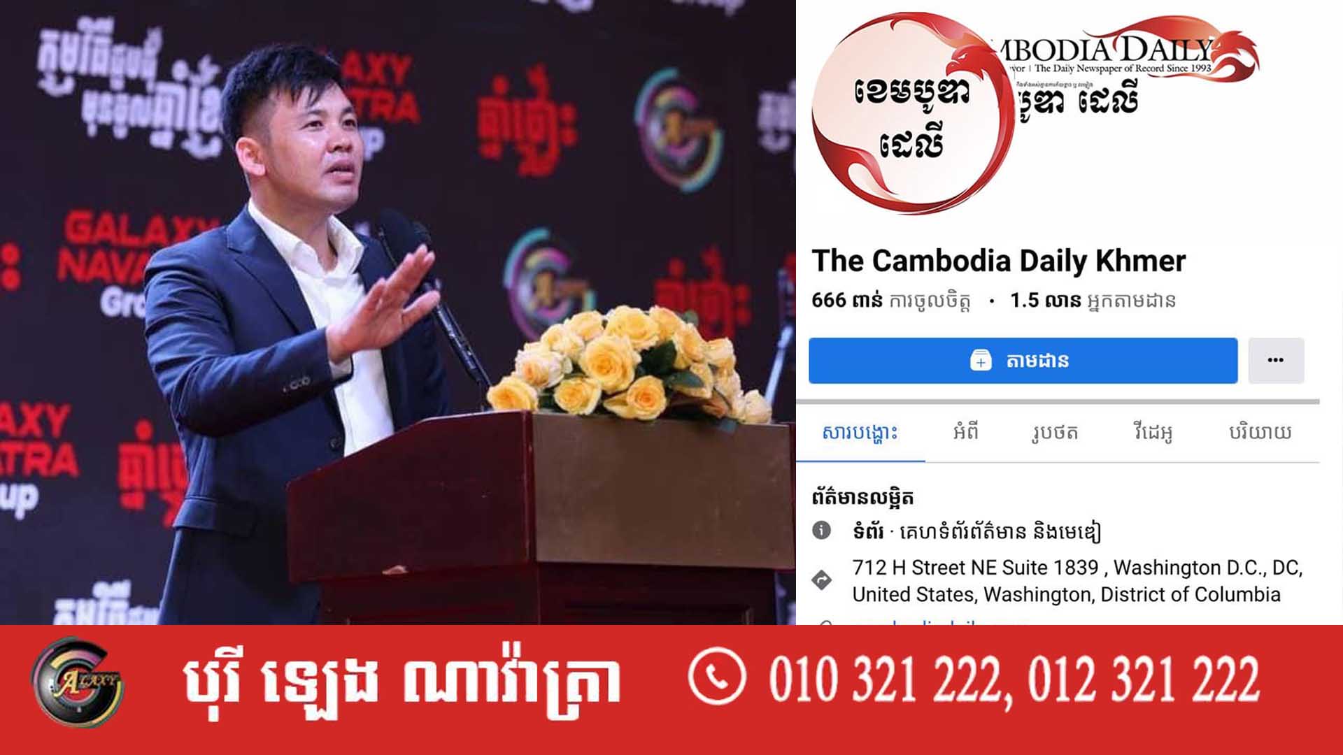 កាលពីពេលថ្មីៗនេះ ទំព័រហ្វេសប៊ុកសារព័ត៌មាន The Cambodia Daily អត់ច្បាប់និរទេសខ្លួនដែលមានឈ្មោះថា «The Cambodia Daily Khmer» មានអ្នក Follow ចំនួន ១លានកន្លះនោះ ត្រូវបានក្រុមហ៊ុនហ្វេសប៊ុកលុបចោលទាំងស្រុងហើយ បន្ទាប់ពីមានការប្តឹងតវ៉ាពីសំណាក់អ្នកឧកញ៉ា ឡេង ណាវ៉ាត្រា ទៅកាន់ក្រុមហ៊ុនហ្វេសប៊ុក ក្រោយពីសារព័ត៌មានមួយនេះបានបង្ហោះព័ត៌មានបំភ្លៃបំផ្លើសញុះញង់ប្រាសចាកពីការពិតម្តងហើយម្តងទៀតពាក់ព័ន្ធនឹងក្រុមហ៊ុនរបស់លោក។
