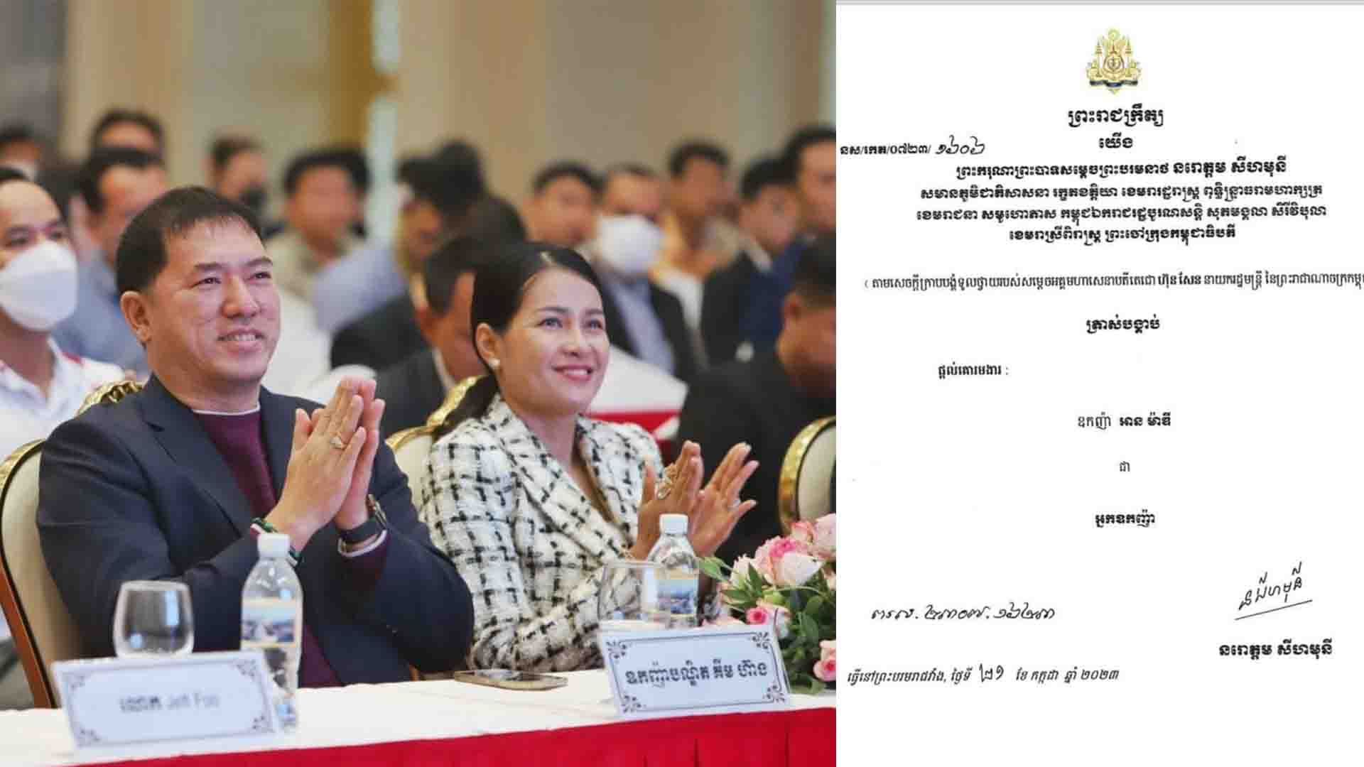 ព្រះរាជទានត្រាស់បង្គាប់ផ្តល់គោរមងារ អ្នកឧកញ៉ា នេះ ពិតជាកិត្តិយសដ៏ឧត្តុង្គឧត្តម និងជាសក្ខីភាព​ឆ្លុះបង្ហាញ​អំពី កិច្ចខិតខំប្រឹងប្រែងលះបង់ ទាំងពេលវេលា និងថវិការផ្ទាល់ខ្លួន របស់អ្នក​ឧកញ៉ា ក្នុងការជួយជ្រោមជ្រែងរាល់សកម្មភាពមនុស្សធម៌ និងចូលរួមបរិច្ចាគជូនដល់កាកបាទក្រហមកម្ពុជា ក៏ដូចជាកិច្ចការមនុស្សធម៌​ជា​ច្រើន ដែលនេះសបញ្ជាក់ពីឆន្ទៈ និងការលះបង់ ចូលរួមចំណែកជាមួយនឹងរាជរដ្ឋាភិបាល ដល់ការអភិវឌ្ឍន៍សេដ្ឋកិច្ចប្រទេសជាតិ និងជាឧត្តម​ប្រយោជន៍ជូន សាធារណៈជន និងប្រជាពលរដ្ឋកម្ពុជា។