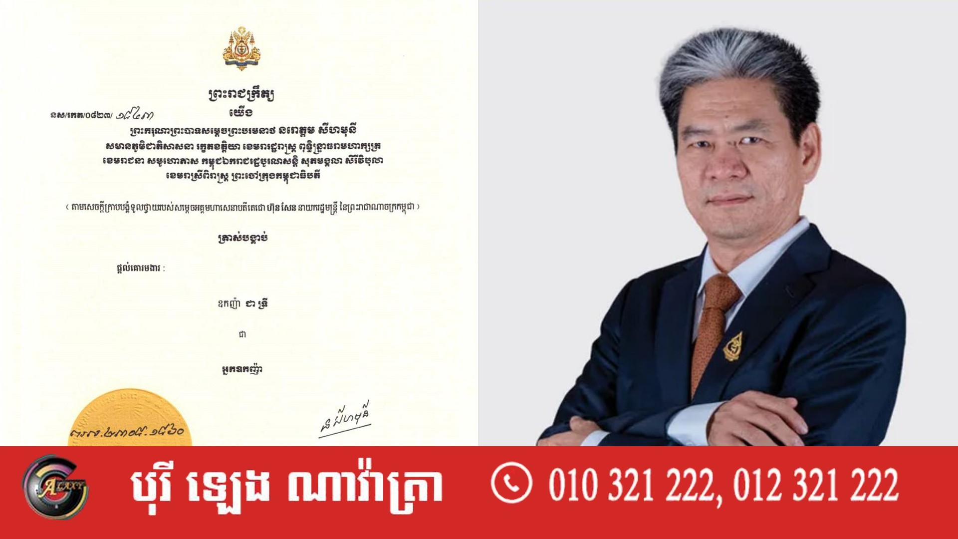 ឧកញ៉ា ជា ទ្រី អគ្គនាយកក្រុមហ៊ុន ហុង ឡេងហ៊ួរ គ្រុប ទទួលបានគោរមងារ «អ្នកឧកញ៉ា»