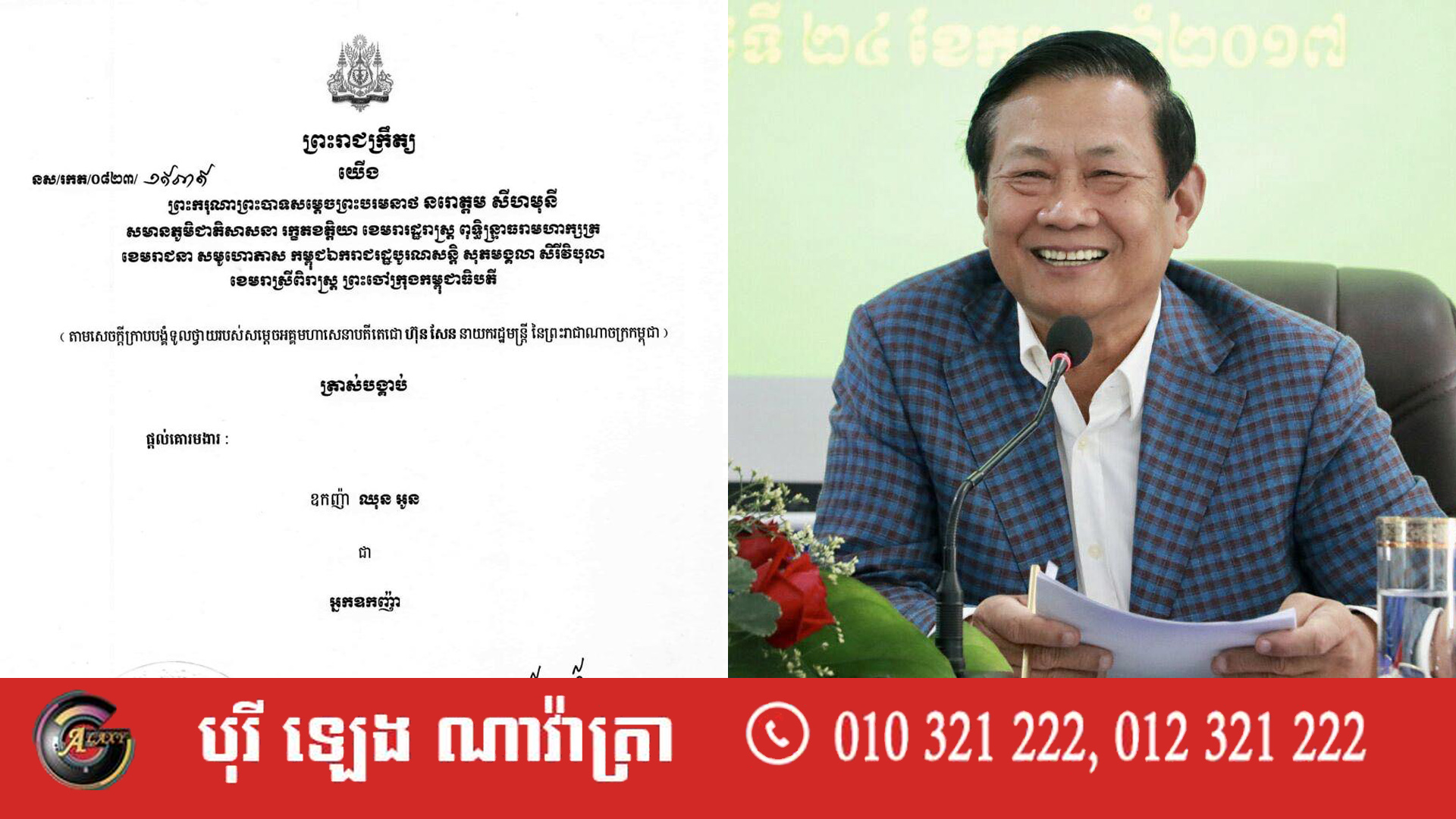 ព្រះករុណាព្រះបាទសម្តេចព្រះបរមនាថ នរោត្តម សីហមុនី ព្រះមហាក្សត្រនៃព្រះរាជាណាចក្រកម្ពុជា បានចេញព្រះរាជក្រឹត្យត្រាស់បង្គាប់ផ្តល់គោរមងារ ឧកញ៉ា ឈុន អូន ស្ថាបនិក និងជាអគ្គនាយកក្រុមហ៊ុនប្រេងឥន្ធនៈតេលា ជា «អ្នកឧកញ៉ា» នៅថ្ងៃទី ១៨ ខែសីហា ឆ្នាំ២០២៣ តាមសេចក្តីក្រាបបង្គំទូលថ្វាយរបស់សម្តេចតេជោ ហ៊ុន សែន នាយករដ្ឋមន្ត្រី នៃព្រះរាជាណាចក្រកម្ពុជា។