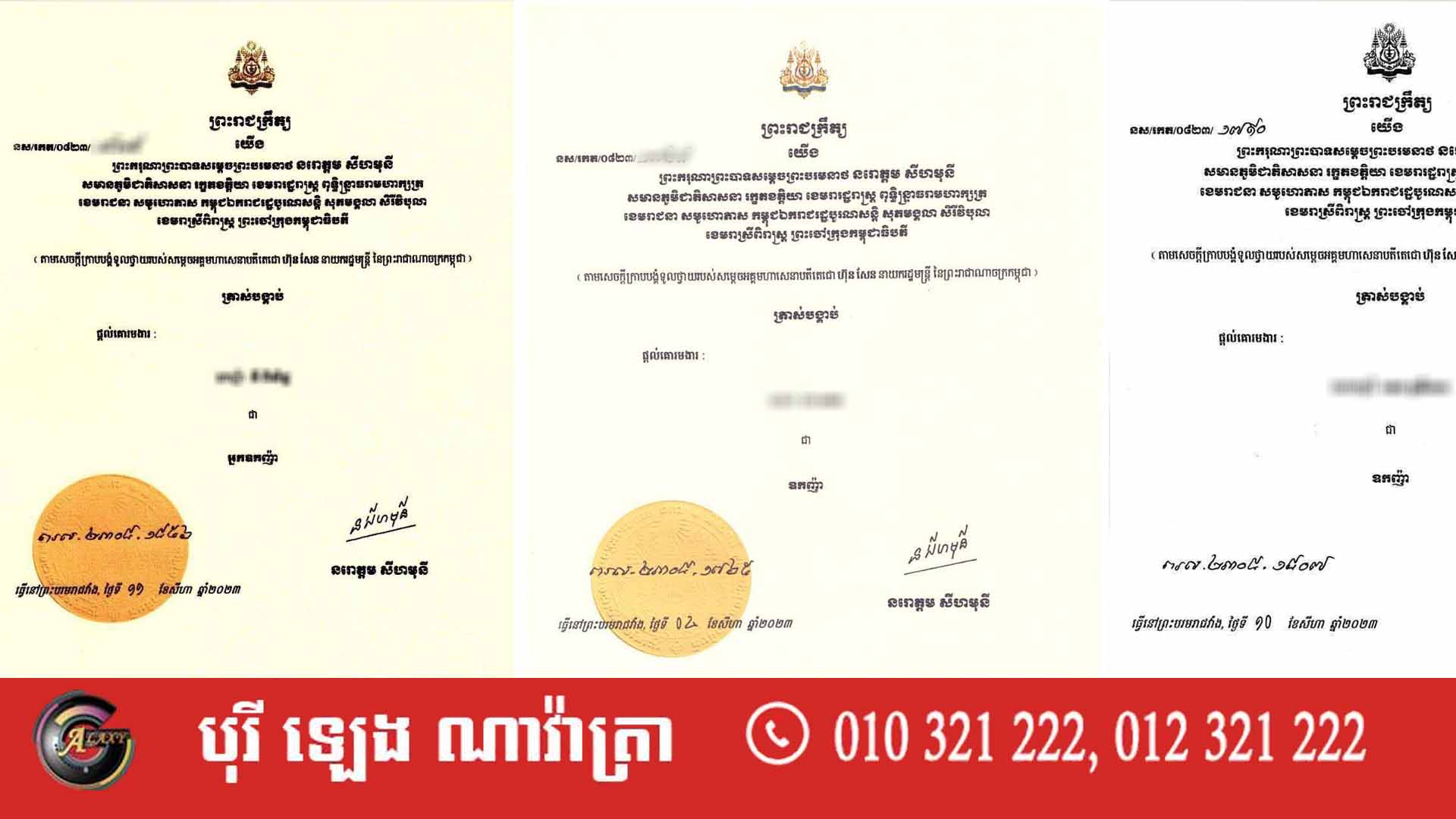 សូមជម្រាបជូនថា ព្រះរាជក្រឹត្យស្ដីពីគោរមងារឧកញ៉ា ដែលមាន១០ជំពូក ២៥មាត្រា និងមានចំនួន១២ទំព័រ ដែលមានកំណត់អំពីគោលការណ៍ លក្ខខណ្ឌ បែបបទ និងនីតិវិធីក្នុងការផ្តល់គោរមងារឧកញ៉ា និងការបញ្ចប់គោរមងារឧកញ៉ា ព្រមទាំងកំណត់អំពីឯកសណ្ឋាន សញ្ញាស័ក្តិ សញ្ញាសម្គាល់ និងបន្តោងខ្សែក ដើម្បីធានាបាននូវសេចក្តីថ្លៃថ្នូរទំនៀមទម្លាប់ប្រពៃណីល្អ សណ្តាប់ធ្នាប់សាធារណៈ សន្តិសុខជាតិ និងការអភិវឌ្ឍសេដ្ឋកិច្ចសង្គម ត្រូវបានព្រះមហាក្សត្រ ដាក់ឲ្យប្រើប្រាស់ជាផ្លូវការហើយនៅថ្ងៃទី៤ ខែសីហា ឆ្នាំ២០២៣៕