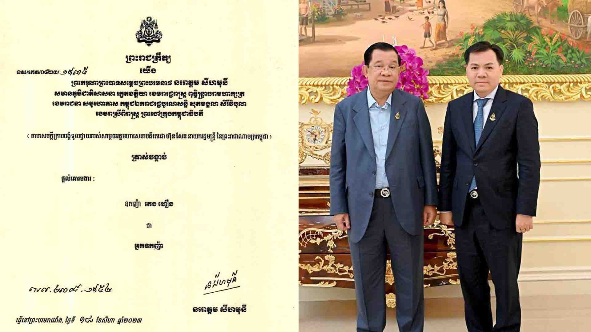 ព្រះរាជទានត្រាស់បង្គាប់ផ្តល់គោរមងារ «អ្នកឧកញ៉ា» ជាសក្ខីភាពឆ្លុះបង្ហាញ អំពីកិច្ចខិតខំប្រឹងប្រែង ទាំងកម្លាំង​កាយចិត្ត ដោយមិនខ្លាចនឿយហត់របស់ អ្នកឧកញ៉ា ក្នុងបុព្វហេតុដើម្បីជួយសង្គមជាតិ និងចូលរួមចំណែកដល់​ការ​អភិវឌ្ឍន៍សេដ្ឋកិច្ចប្រទេសជាតិ ឱ្យកាន់តែរីកចម្រើន។ ការប្រទាននេះពិតជាស័ក្តិសម និងផ្ដល់កិត្តិយស​ដ៏ឧត្តុង្គ​ឧត្តមបំផុតសម្រាប់អ្នកឧកញ៉ា និងក្រុមគ្រួសារ។