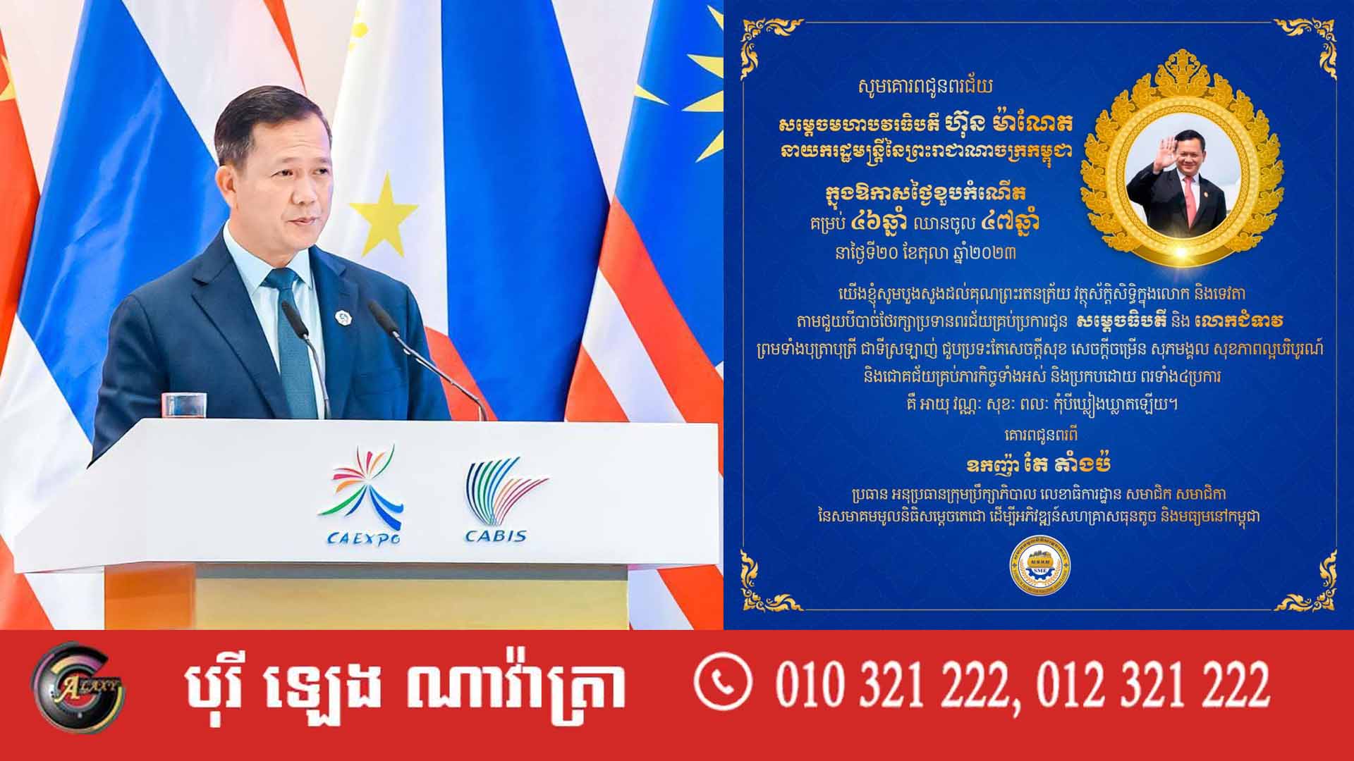 ឧកញ៉ា តែ តាំងប៉ ផ្ញើសារជូនពរសម្តេចមហាបវរធិបតី ហ៊ុន ម៉ាណែត ក្នុងឱកាសខួបកំណើតគម្រប់ ៤៦ ឈានចូល ៤៧ឆ្នាំ