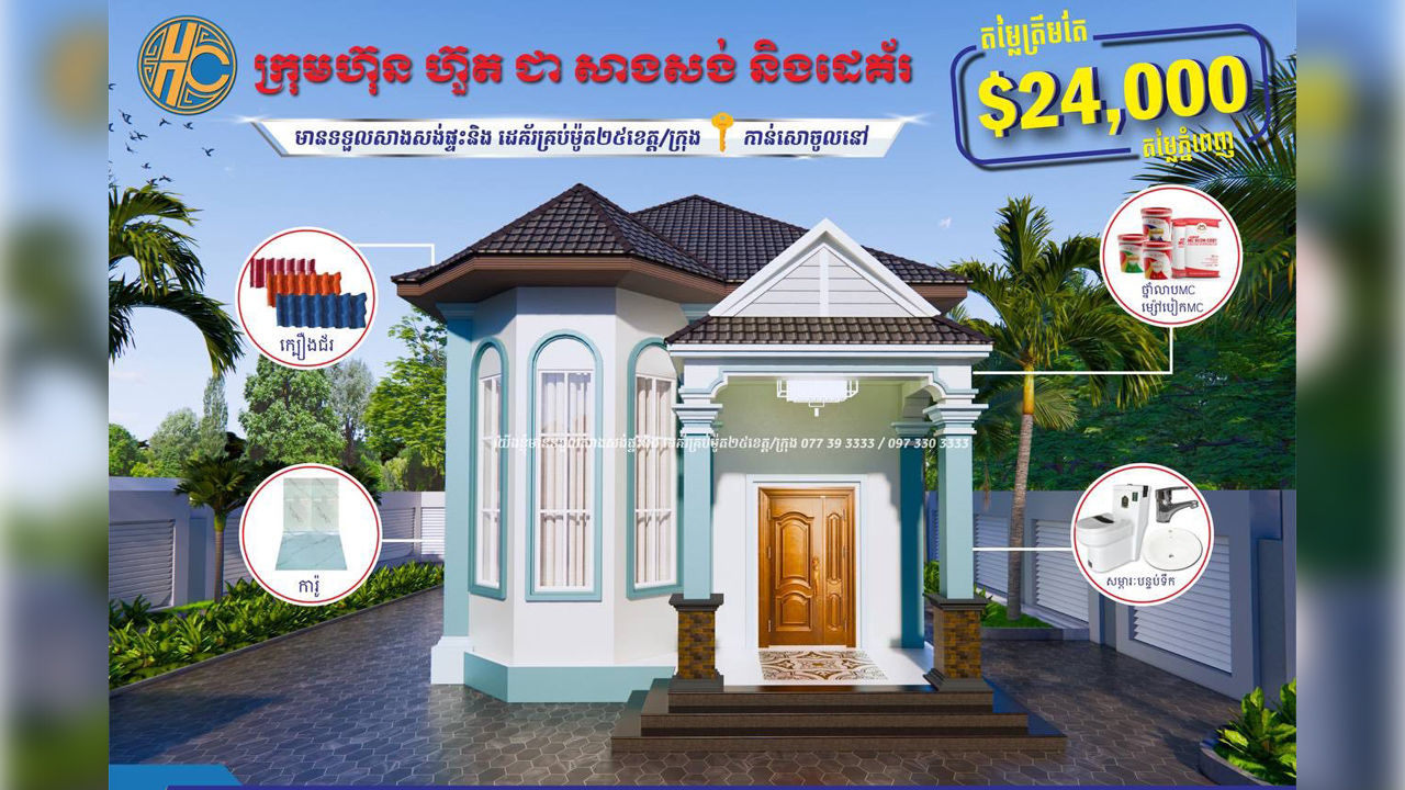 ជាមួយនឹងបទពិសោធន៍លក់គ្រឿងសំណង់ជាង ១០ឆ្នាំ លោកអ្នកគ្រាន់តែជ្រើសរើសម៉ូតផ្ទះដែលខ្លួនពេញចិត្ត ជាមួយនឹងតម្លៃដ៏សមរម្យពិសេស ហើយរង់ចាំការកាន់សោចូលនៅតែម្តង។ ការទទួលម៉ៅការសាងសង់នេះ គឺម៉ៅផ្ដាច់ទាំងសម្ភារៈ ព្រមទាំងឈ្នួលជាង, សាងសង់ដោយក្រុមវិស្វករដែលមានជំនាញច្បាស់លាស់ជាច្រើនឆ្នាំ, មានក្រុមជាងមានបទពិសោធន៍យូរឆ្នាំ, ធានាមិនកេងសម្ភាៈសំណង់, ការសាងសង់មានកិច្ចសន្យាជូនដល់ម្ចាស់ផ្ទះ ១០០% និងការគូប្លង់ដ៏ពេញចិត្ត។ អ្វីដែលកាន់តែពិសេស ការងារលឿនរហស័ទាន់ពេលវេលា ផ្ដល់ទំនុកចិត្តជូនម្ចាស់ផ្ទះ ១០០% ហើយម្ចាស់ផ្ទះរង់ចាំតែកាន់សោចូលនៅជាការស្រេច។