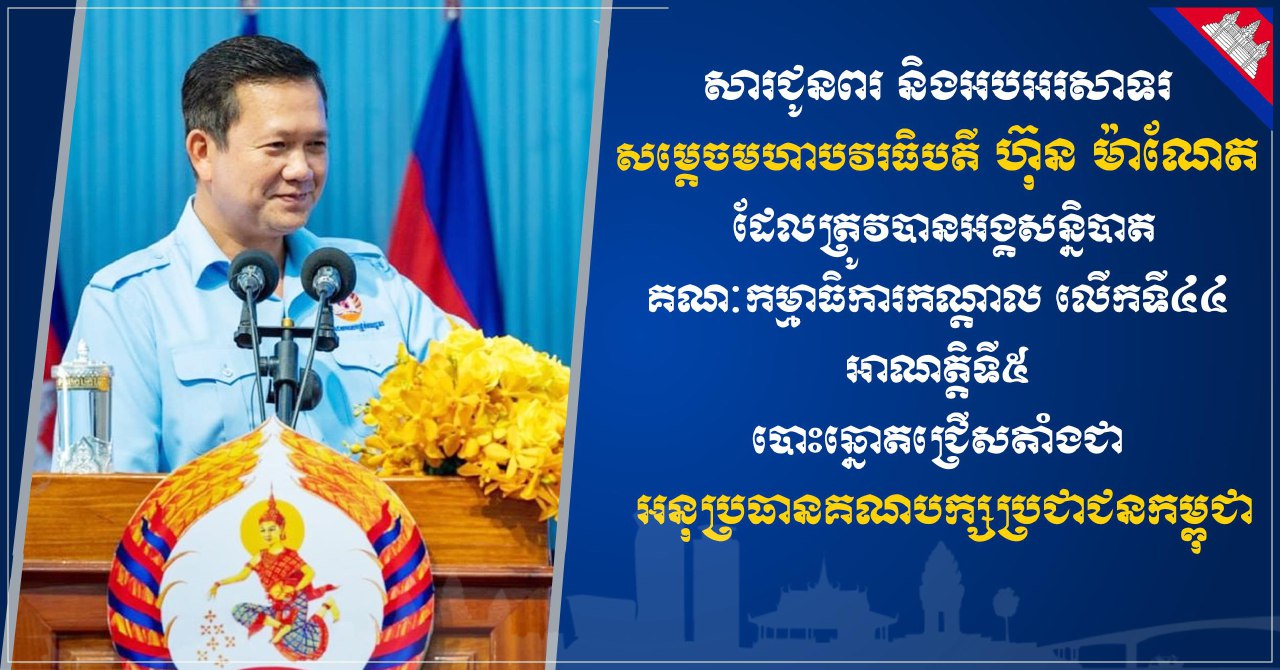 នាឱកាសដ៏មង្គលសួស្ដីថ្លៃថ្លារីករាយនេះ យើងខ្ញុំសូមបួងសួងដល់តេជបារមីនៃវត្ថុស័ក្តិសិទ្ធិទាំងអស់ក្នុងលោក ទេវតាថែរក្សាទឹកដីនៃព្រះរាជាណាចក្រកម្ពុជា សូមអភិបាលប្រោះព្រំ ប្រសិទ្ធពរជ័យជូន សម្តេចមហាបវរធិបតី ព្រមទាំងក្រុមគ្រួសារ បុត្រាបុត្រីជាទីស្រឡាញ់ សូមបន្តជោគជ័យគ្រប់ភារកិច្ច និងសូមបានប្រកបដោយព្រះពុទ្ធពរទាំង៤ ប្រការ គឺ អាយុ វណ្ណៈ សុខៈ ពលៈ កុំបីឃ្លៀងឃ្លាតឡើយ៕