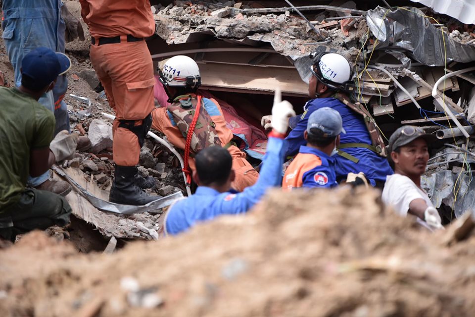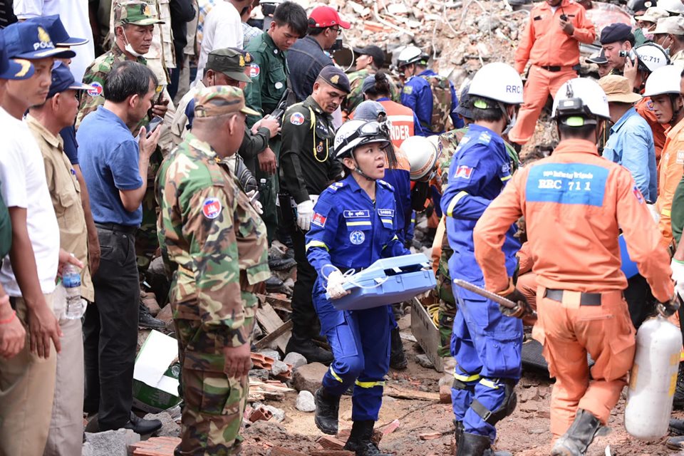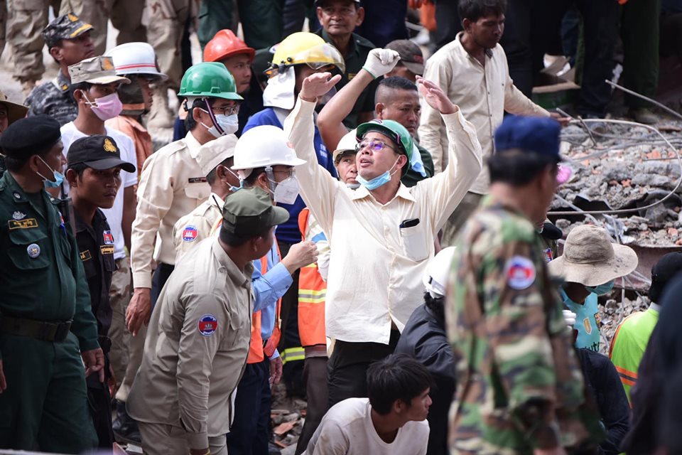 តាមប្រភពលោកHuy Bunleng អ្នករាយការណ៌ព័ត៌មានល្បីឈ្មោះ ឲ្យPNN គិតមកត្រឹមម៉ោងជិត៧យប់ថ្ងៃ២២មិថុនា២០១៩នេះ ក្រុមសង្គ្រោះច្រើនរាប់រយនាក់ កំពុងបន្តសកម្មភាពកាយគំនរបាក់បែកពីសំណង់អាគារសណ្ឋាគារដែលបាក់រលំនៅក្រុងព្រះសីហនុ ចូលរួមពីអជ្ញាធរកម្ពុជា និងក្រុមអ្នកជំនាញជនជាតិចិនផងដែរ។ បើតាមមន្ត្រីចូលរួមប្រតិបត្តិការថ្លែង សកម្មភាពនេះនិងបន្តធ្វើទាំងយប់បើទោះជាមានភ្លៀងរលឹមក៏ដោយ ដោយរៀបចំភ្លើងបំភ្លឺពីក្រុមបច្ចេកទេសអគ្គិសនីខេត្តព្រះសីហនុ ដើម្បីពន្លឿនក្នុងការកាយយកគំនរបាក់បែកនេះ។