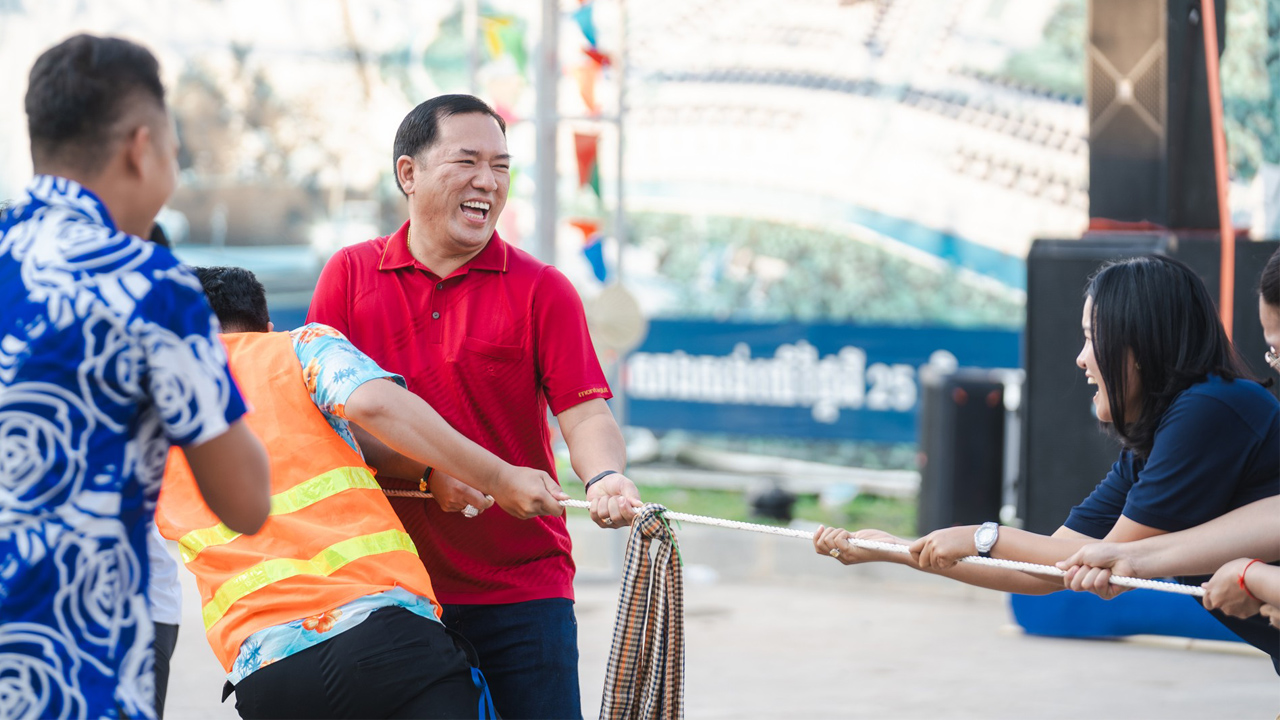 ក្នុងឱកាសដ៏រីករាយនេះដែរ លោកឧកញ៉ាបណ្ឌិត និងលោកជំទាវឧកញ៉ា បានចូលរួមលេងល្បែងប្រជាប្រិយខ្មែរជាមួយបុគ្គលិកគ្រប់ជាន់ថ្នាក់ ដែលរួមមានសកម្មភាពដូចជា លេងទាញព្រ័ត្រ លេងបោះអង្គញ់ វាយក្អម ព្រមទាំងការទទួលទានអាហារសាមគ្គីអបអរឆ្នាំថ្មី ផងដែរ។