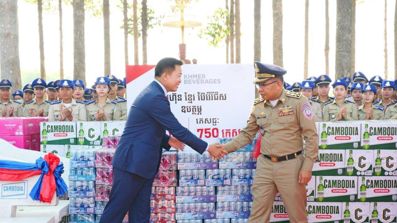 ឈរលើគោលការណ៍ជួយត្រលប់ទៅសង្គម ដែលជាគុណតម្លៃស្នូល មិនអាចខ្វះបាន ថ្នាក់ដឹកនាំកំពូល ក្រុមហ៊ុន ខ្មែរ ប៊ែវើរីជីស អ្នកឧកញ៉ា លាង ម៉េង និងសហការី បានឧបត្ថម្ភបង់អង្គុយចំនួន ១៥០បង់ និងភេសជ្ជៈ សរុបចំនួន ៧៥០ កេស ដល់ឯកឧត្ដម នាយឧត្តមសេនីយ៍ សាស្ត្រាចារ្យ ឯក មនោសែន ប្រធានបណ្ឌិត្យសភានគរបាលកម្ពុជា ដែលមាន ទីតាំងស្ថិត នៅឃុំ ដីឥដ្ឋ ស្រុកកៀនស្វាយ ខេត្តកណ្តាល សម្រាប់ប្រើប្រាស់ជាឧត្តមប្រយោជន៍រួមក្នុងឱកាសពិធីបុណ្យ ចូលឆ្នាំថ្មីប្រពៃណីជាតិខាងមុខនេះ។