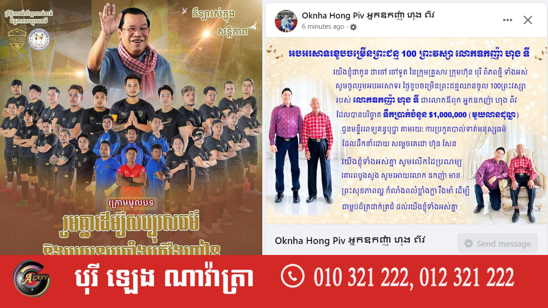 ឧកញ៉ា ហុង ទី ឪពុកបង្កើតរបស់អ្នកឧកញ៉ា ហុង ពីវ នៅក្នុងឱកាសខួបចម្រើនព្រះជន្ម១០០ព្រះវស្សា ឆ្នាំនេះ បានបរិច្ចាគថវិកាចំនួន១លានដុល្លារជូនមន្ទីរពេទ្យគន្ធបុប្ផា តាមរយៈ ការប្រកួតបាល់ទាត់មនុស្សធម៌របស់ក្រុមបាល់ទាត់តារាកម្ពុជា (Cambodia football super stars) ដែលដឹកនាំដោយ សម្តេចតេជោ ហ៊ុន សែន ប្រធានព្រឹទ្ធសភា។ នេះបើតាមការបញ្ជាក់ឱ្យដឹងរបស់អ្នកឧកញ៉ា ហុង ពីវ នៅលើបណ្ដាញសង្គមហ្វេសប៊ុករបស់ខ្លួន នាព្រឹកថ្ងៃទី២៩ ខែមេសា ឆ្នាំ២០២៤។