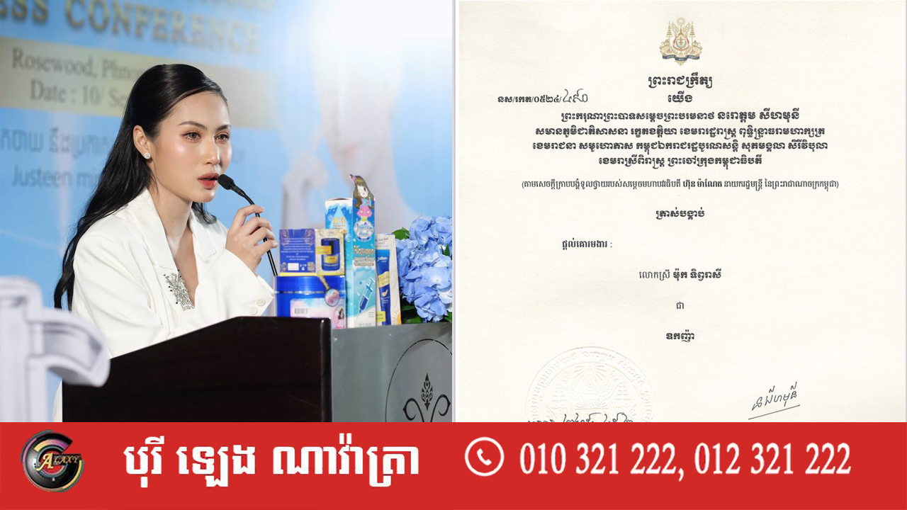 ព្រះករុណាព្រះបាទសម្ដេចព្រះបរមនាថ នរោត្តម សីហមុនី ព្រះមហាក្សត្រនៃកម្ពុជា បានចេញព្រះរាជក្រឹត្យត្រាស់បង្គាប់ផ្ដល់គោរមងារ «ឧកញ៉ា» ដល់លោកស្រី ម៉ុក ទិព្វរាសី ដែលជានាយិកាក្រុមហ៊ុន ចាស្តស្ទីន មីរ៉ាខល (Justeen Miracle co.,ltd) នៅថ្ងៃទី២៤ ខែឧសភា ឆ្នាំ២០២៤។