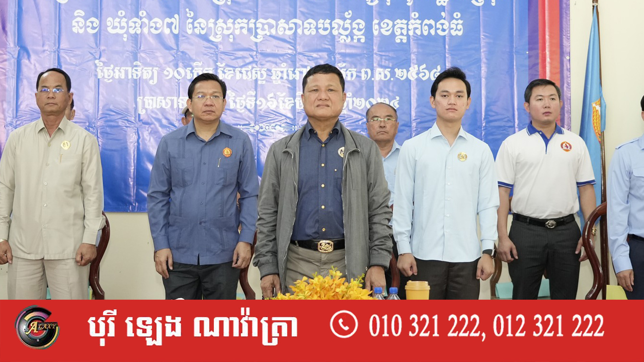 លោកអ្នកឧកញ៉ា ទ្រី ភាព អនុប្រធានក្រុមការងារគណបក្សចុះមូលដ្ឋានខេត្ត និងជាប្រធានក្រុមការងារគណបក្សចុះមូលដ្ឋានស្រុកប្រាសាទបល្ល័ង្ក ខេត្តកំពង់ធំ នាព្រឹកថ្ងៃទី១៦ ខែមិថុនា ឆ្នាំ២០២៤នេះ បានអញ្ជើញជាអធិបតីក្នុងពិធីប្រកាសសមាសភាព ក្រុមការងារគណបក្សចុះមូលដ្ឋានស្រុក និង ឃុំទាំង ៧ នៃស្រុកប្រាសាទបល្ល័ង្ក ខេត្តកំពង់ធំ។