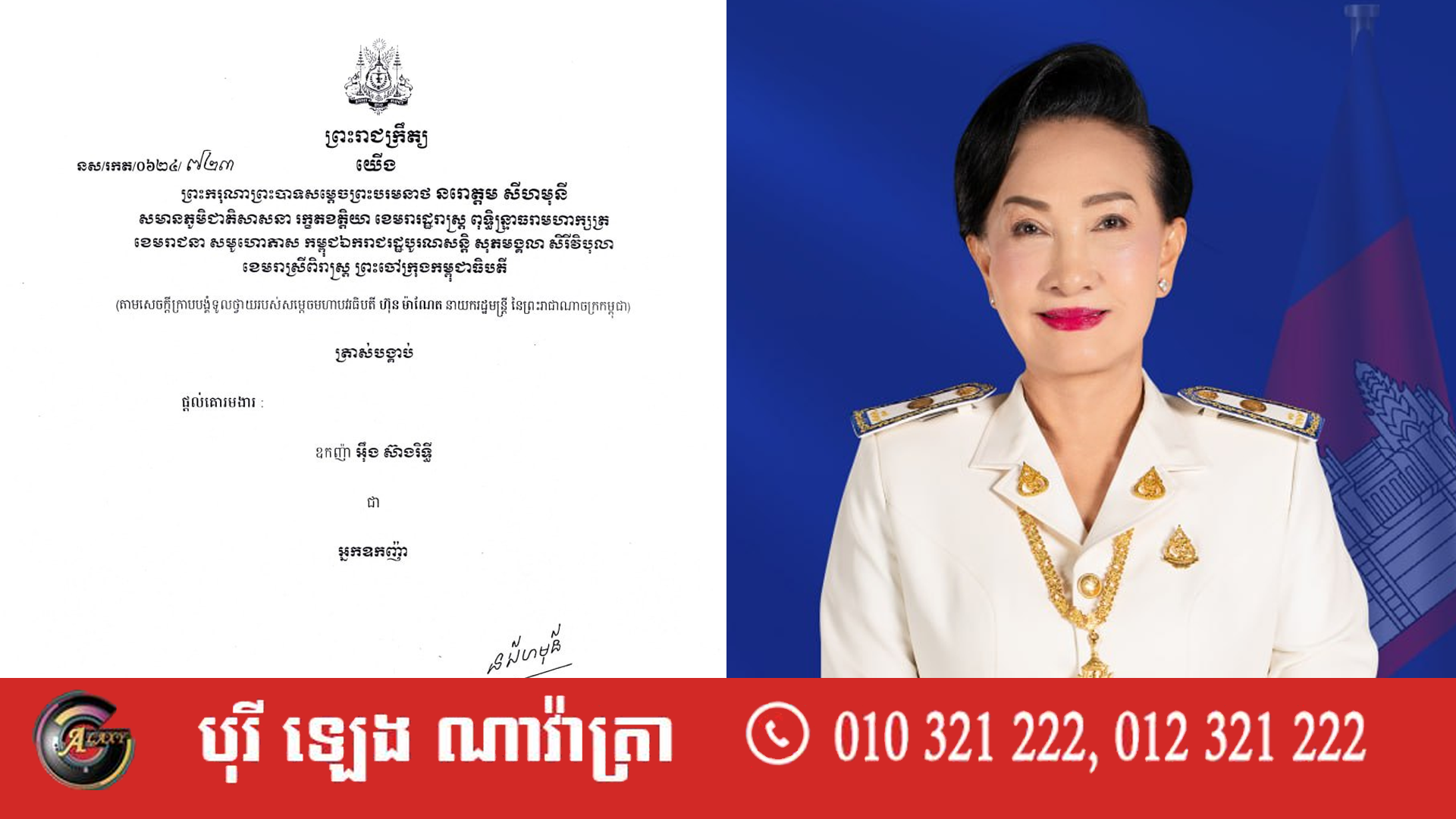 ព្រះករុណាព្រះបាទសម្តេចព្រះបរមនាថ នរោត្តម សីហមុនី ព្រះមហាក្សត្រ នៃព្រះរាជាណាចក្រកម្ពុជា បានប្រោសព្រះរាជទានត្រាស់បង្គាប់ផ្តល់គោរមងារ លោកស្រី ឧកញ៉ា អ៊ឹង ស៊ាងរិទ្ធី សមាជិកនៃសមាគមឧកញ៉ាកម្ពុជា ជា «អ្នកឧកញ៉ា» នៅថ្ងៃទី២៦ ខែមិថុនា ឆ្នាំ២០២៤ តាមសេចក្តីក្រាបបង្គំទូលថ្វាយរបស់សម្តេចធិបតី ហ៊ុន ម៉ាណែត នាយករដ្ឋមន្ត្រីកម្ពុជា។
