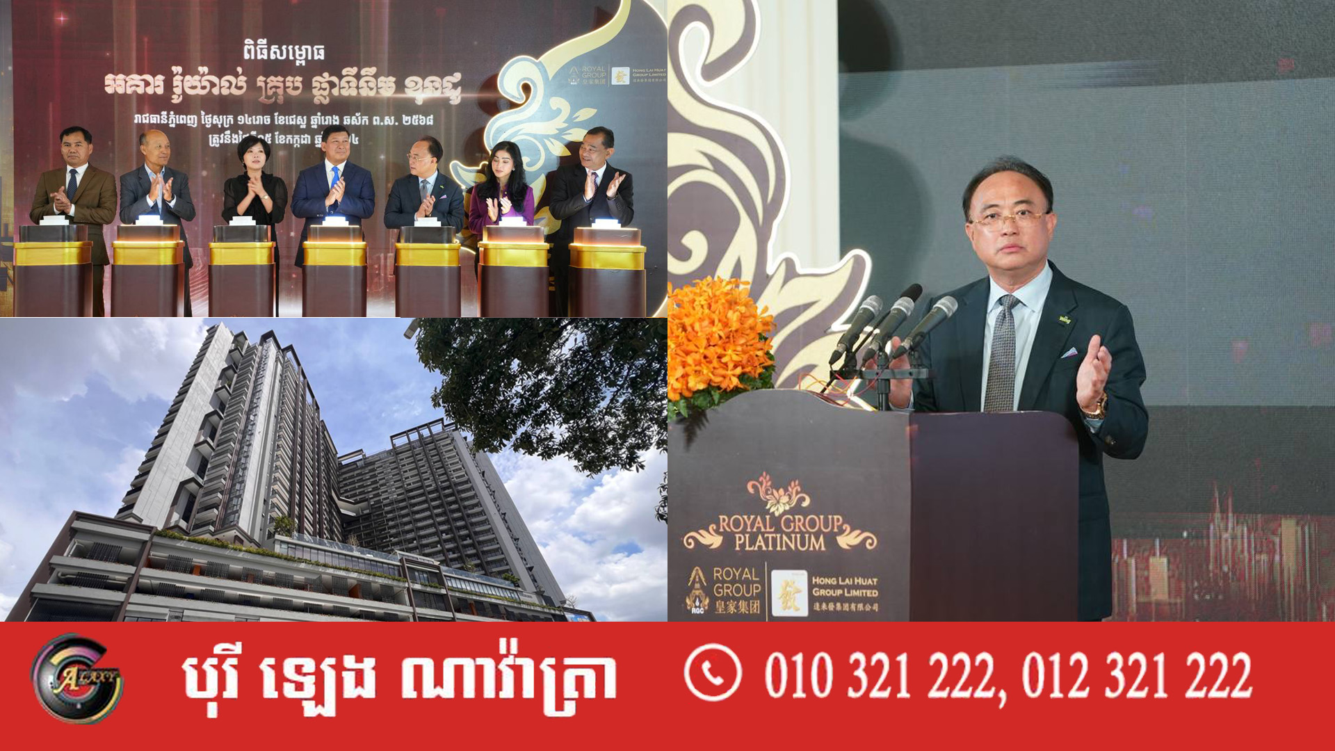 សូមជម្រាបថា គម្រោងអគារខុនដូប្រណិត «រ៉ូយ៉ាល់ គ្រុប ផ្លាទីនឹម» នៃក្រុមហ៊ុន រ៉ូយ៉ាល់ហុងឡៃហួត វ័ន ឯ.ក បានបញ្ចុះបឋមសិលាបើកការដ្ឋានសាងសង់កាលពីថ្ងៃអង្គារ ទី៧ ខែឧសភា ឆ្នាំ២០១៩។ គម្រោងនេះ ប្រសូត្រចេញពីការវិនិយោគរួមគ្នារវាងក្រុមហ៊ុនធំៗដ៏ល្បីពីរ គឺក្រុមហ៊ុន រ៉ូយ៉ាល់ គ្រុប និងក្រុមហ៊ុន ហុងឡៃហួត គ្រុប របស់ប្រទេសសិង្ហបុរី៕