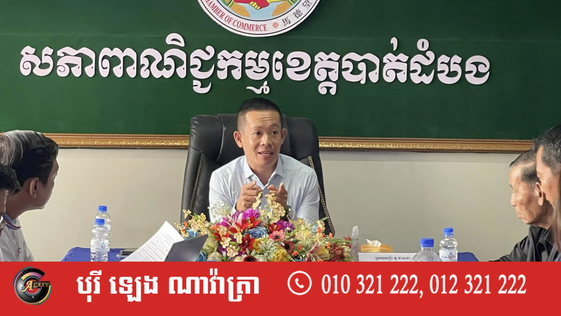 នាព្រឹកថ្ងៃអង្គារ ទី៧ ខែសីហា ឆ្នាំ២០២៤ អ្នកឧកញ៉ា ភួ វាសនា អនុប្រធានសភាពាណិជ្ជកម្មកម្ពុជា និងជាប្រធានសភាពាណិជ្ជកម្មខេត្តបាត់ដំបង បានបើកកិច្ចប្រជុំពិភាក្សាជាមួយក្រុមការងារវិស័យឯកជន ស្ដីពី “បញ្ហាប្រឈមដែលម្ចាស់អាជីវកម្មបានជួបប្រទះ និងបានលើកឡើង កាលពីថ្ងៃទី២៥ ខែកក្កដា ឆ្នាំ២០២៤“ កន្លងមក។
