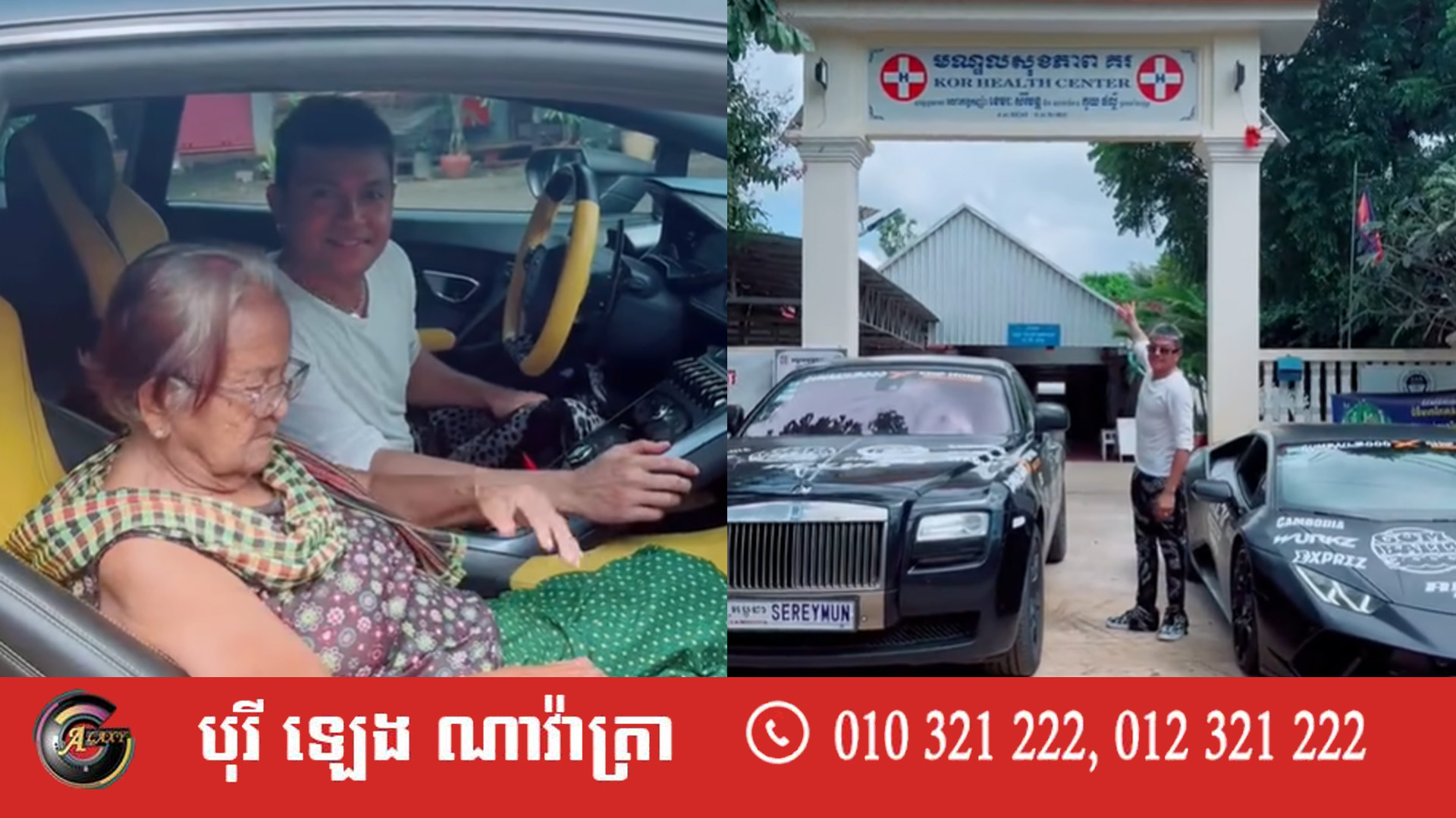 ឧកញ៉ា ខេមរៈ សិរីមន្ត បើកឡានស្ព័រ Lamborghini ជូនលោកយាយទៅមណ្ឌលសុខភាព