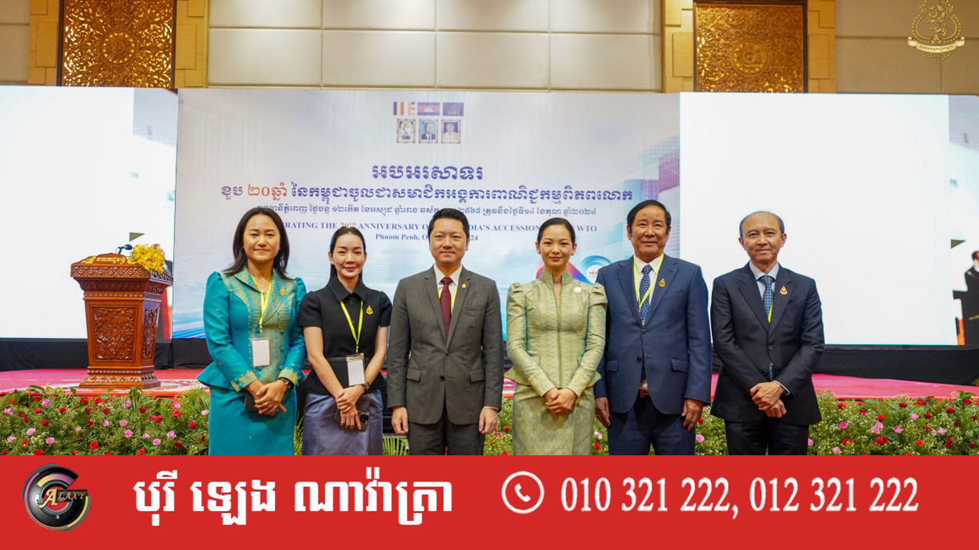 នាព្រឹកថ្ងៃចន្ទ ទី១៤ ខែតុលា ឆ្នាំ២០២៤នេះ អ្នកឧកញ៉ា ហាន់ ឃាង អនុប្រធានសមាគមឧកញ៉ាកម្ពុជា បានដឹកនាំប្រតិភូសមាគមឧកញ៉ាកម្ពុជាចំនួន ៨រូប ចូលរួមក្នុង «ព្រឹត្តិការណ៍អបអរសាទរខួប ២០ឆ្នាំ នៃកម្ពុជាចូលជាសមាជិកអង្គការពាណិជ្ជកម្មពិភពលោក(WTO)» ដែលបានប្រារព្ធធ្វើឡើងក្រោមអធិបតីភាពដ៏ខ្ពង់ខ្ពស់សម្តេចមហាបវរធិបតី ហ៊ុន ម៉ាណែត នាយករដ្ឋមន្ដ្រី នៃព្រះរាជាណាចក្រកម្ពុជា នៅសណ្ឋាគារសុខាភ្នំពេញ។