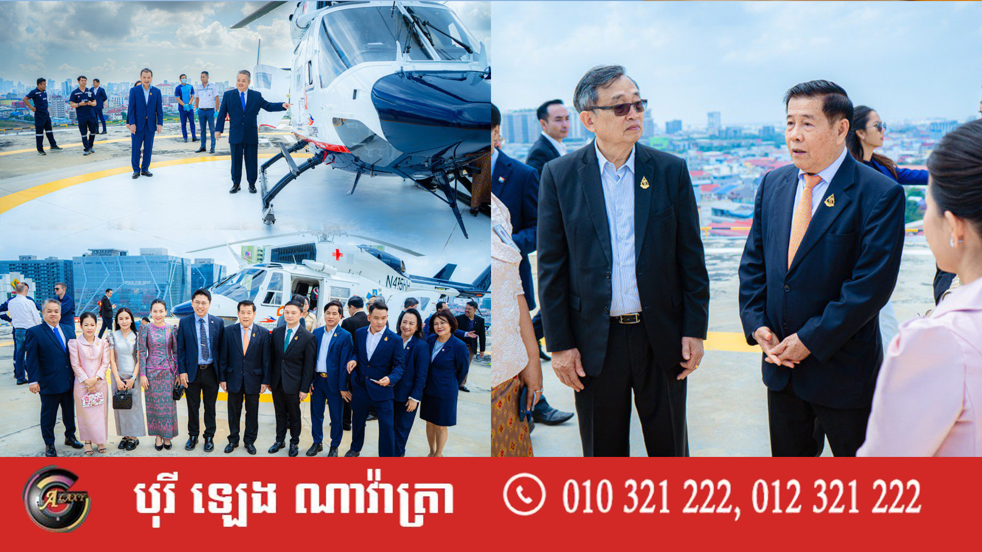 លោកអ្នកឧកញ៉ា លី ហួរ អនុប្រធានសមាគមឧកញ៉ាកម្ពុជា រួមជាមួយអ្នកឧកញ៉ា ឧកញ៉ា ជាថ្នាក់ដឹកនាំ និងសមាជិក នៃសមាគមឧកញ៉ាកម្ពុជា កាលថ្ងៃទី១១ ខែវិច្ឆិកា ឆ្នាំ២០២៤ បានអញ្ជើញទស្សនាការហោះហើរសាកល្បងនៃឧទ្ធម្ភាគចក្រសម្រាប់សេវាសង្គ្រោះផ្នែកវេជ្ជសាស្រ្ត ឬ Air Ambulance របស់មន្ទីរពេទ្យ រ៉ូយ៉ាល់ ភ្នំពេញ។