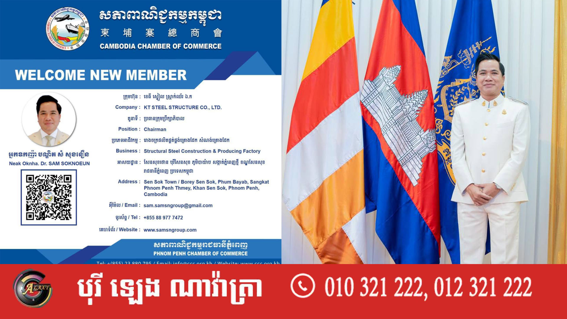 អ្នកឧកញ៉ាបណ្ឌិត សំ សុខនឿន ប្រធានក្រុមប្រឹក្សាភិបាល ក្រុមហ៊ុន ខេធី ស្ទៀល ស្រ្កាក់ឈ័រ ឯ.ក បានក្លាយជាសមាជិកថ្មីរបស់សភាពាណិជ្ជកម្មកម្ពុជា។ នេះបើតាមសេចក្តីប្រកាសព័ត៌មានរបស់សភាពាណិជ្ជកម្មកម្ពុជា នៅព្រឹកថ្ងៃទី២៥ ខែវិច្ឆិកា ឆ្នាំ២០២៤។