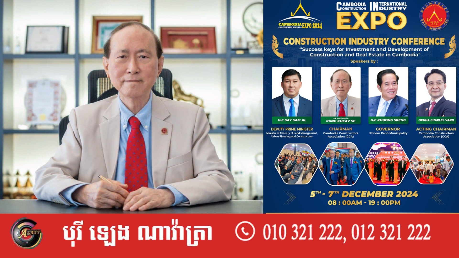 លោកអ្នកឧកញ៉ា ពុង ឃាវសែ ប្រធានសមាគមអ្នកសាងសង់កម្ពុជា នឹងចូលរួមធ្វើជាវាគ្មិនលើកិច្ចពិភាក្សាស្តីពី “គន្លឹះជោគជ័យសម្រាប់ការវិនិយោគ និងការអភិវឌ្ឍន៍សំណង់ និងអចលនទ្រព្យនៅកម្ពុជា” ក្នុងវេទិកាពិព័រណ៍ឧស្សាហកម្មសំណង់កម្ពុជា-អន្តរជាតិ នៅថ្ងៃទី៥ ដល់ថ្ងៃទី៧ ខែធ្នូ ឆ្នាំ២០២៤ នៅមជ្ឈមណ្ឌលតាំងពិព័រណ៍កោះពេជ្រ។