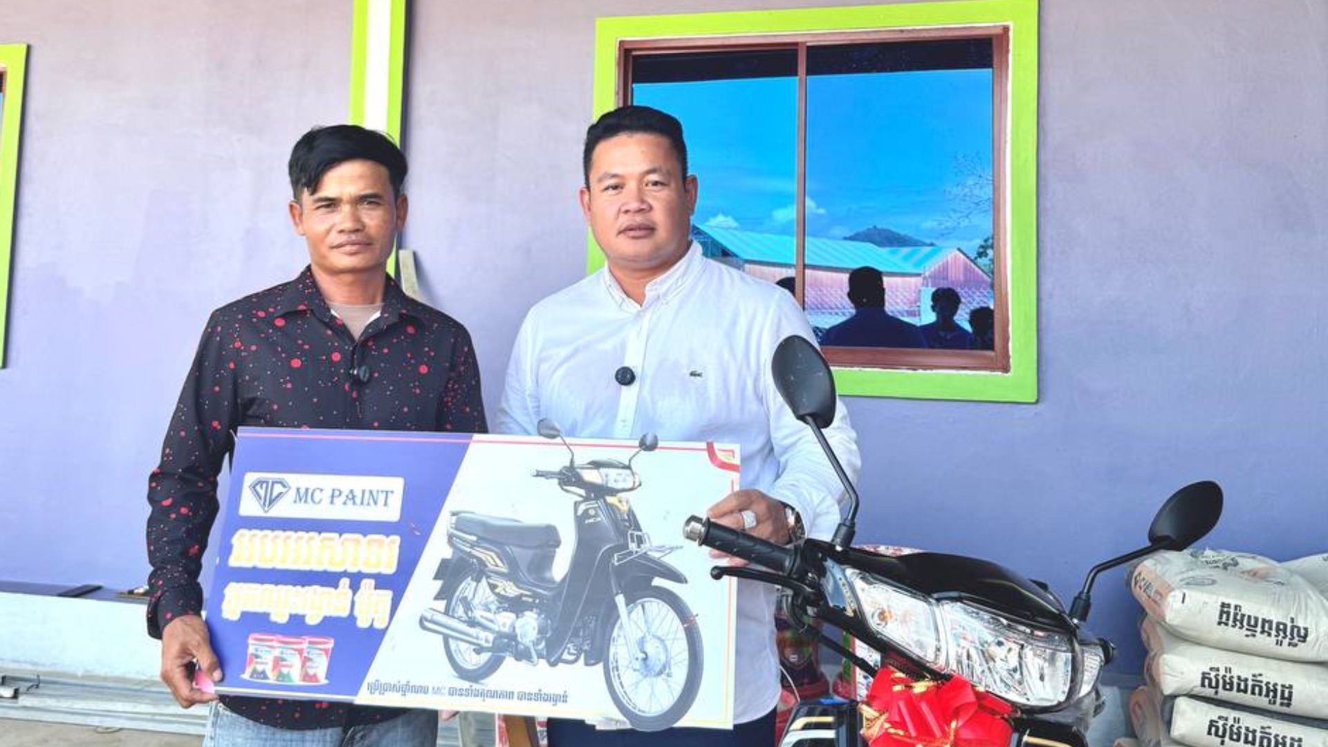 ជ្រើសរើសថ្នាំលាប MC មានវត្តមាននៅក្នុងប្រទេសកម្ពុជា ដោយតំលៃសមរម្យ គុណភាពល្អ មានកាធានា ថែមទាំងមានរង្វាន់ជាច្រើន ម៉ូតូ ៥គ្រឿង លុយ ៥០០ ០០០ រៀលជាច្រើនរង្វាន់ នៅក្នុងធុងថ្នាំលាប ថ្នាំទ្រនាប់ MC ម៉ូតូទី១ ជាក់ស្តែងបានទៅលើម្ចាស់ផ្ទះឈ្មោះ សៀង រ៉ាឌី  ទីតាំងការដ្ឋាននៅ ឃុំទួលព្រិច ស្រុកអង្គស្នួល ត្រូវថ្ងៃទី ២៣ ខែ ១១ ឆ្នាំ២០២៤ និង នៅថ្ងៃទី ៦ខែ១២ ឆ្នាំ២០២៤ នៅព្រែកចាកស្រុក ម៉ូតូទី ២ បានលើមេជាងឈ្មោះ ដួង ស៊ីថូ  ស្រុកកំពង់ត្រាច ខេត្តកំពត ដែលជាវថ្នាំលាបយកទៅប្រើប្រាស់ហើយថែមទាំងមានសំណាងបានរង្វាន់ធំពីក្រុមហ៊ុនទៀត!