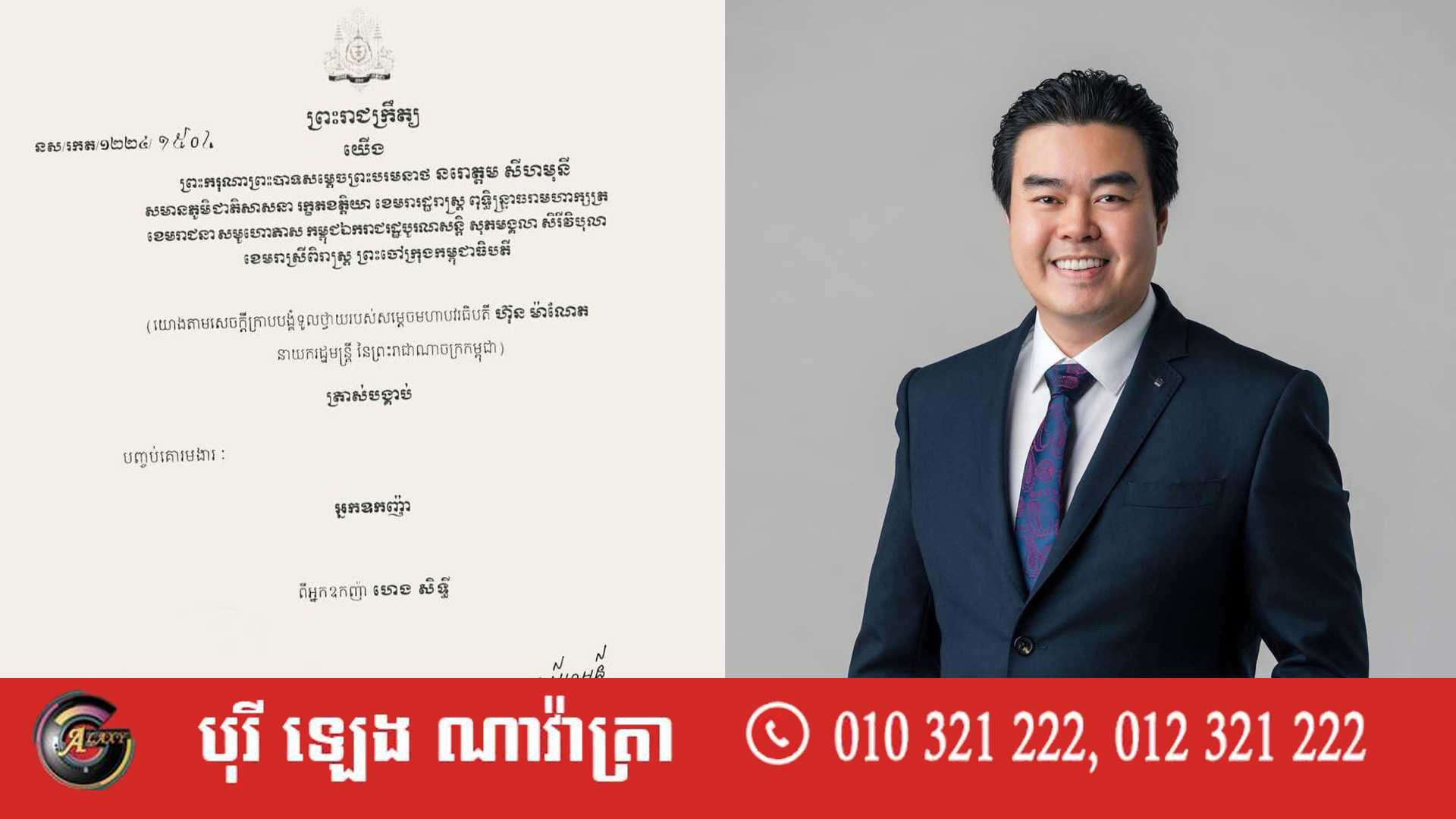 ព្រះមហាក្សត្រ ចេញព្រះរាជក្រឹត្យបញ្ចប់គោរមងារ «អ្នកឧកញ៉ា» ពីអ្នកឧកញ៉ា ហេង សិទ្ធី បន្ទាប់ពីមានពាក្យបណ្តឹងគំរាមទារប្រាក់ ២លានដុល្លារ ពីជនជាតិសិង្ហបុរី