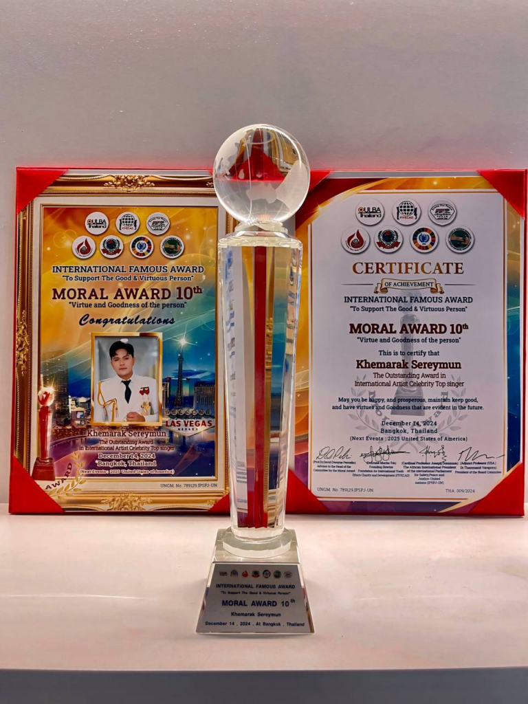 អបអរសាទកំពូលតារាចម្រៀងឧកញ៉ា ខេមរៈ សិរីមន្តទទួលបានពានលំដាប់ថ្នាក់ពិភពលោកពី International University Of Morality នៅ អាមេរិក !