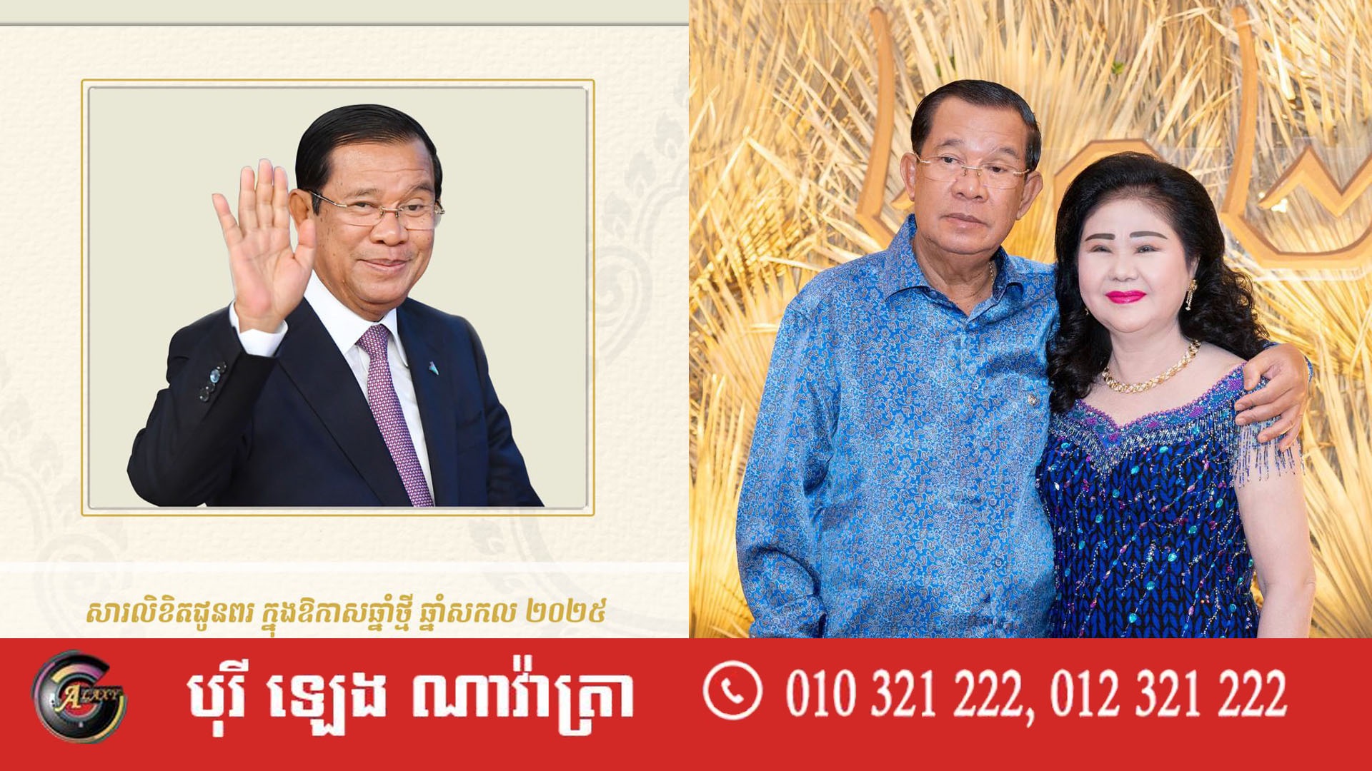 ក្នុងទិវាដ៏មហានក្ខត្តឫក្សប្រសើរថ្លៃថ្លានាឱកាសចូលឆ្នាំថ្មី ឆ្នាំសកល ២០២៥ ដែលនឹងឈានចូលមកដល់ នាថ្ងៃទី០១ ខែមករា ឆ្នាំ២០២៥ ខាងមុខនេះ យើងខ្ញុំសូមគោរពជូនពរជ័យ សិរីមង្គល មហាប្រសើរបំផុតជូនចំពោះ សម្តេចតេជោ និងសម្តេចកិត្តិព្រឹទ្ធបណ្ឌិត ព្រមទាំងបុត្រាបុត្រី និងចៅប្រុស ចៅស្រី ជាទីស្រឡាញ់ សូមប្រកបដោយសុខភាពល្អបរិបូរណ៍ ជន្មាយុយឺនយូរ កម្លាំងពលំមាំមួន បញ្ញាញាណវាងវៃភ្លឺថ្នា។