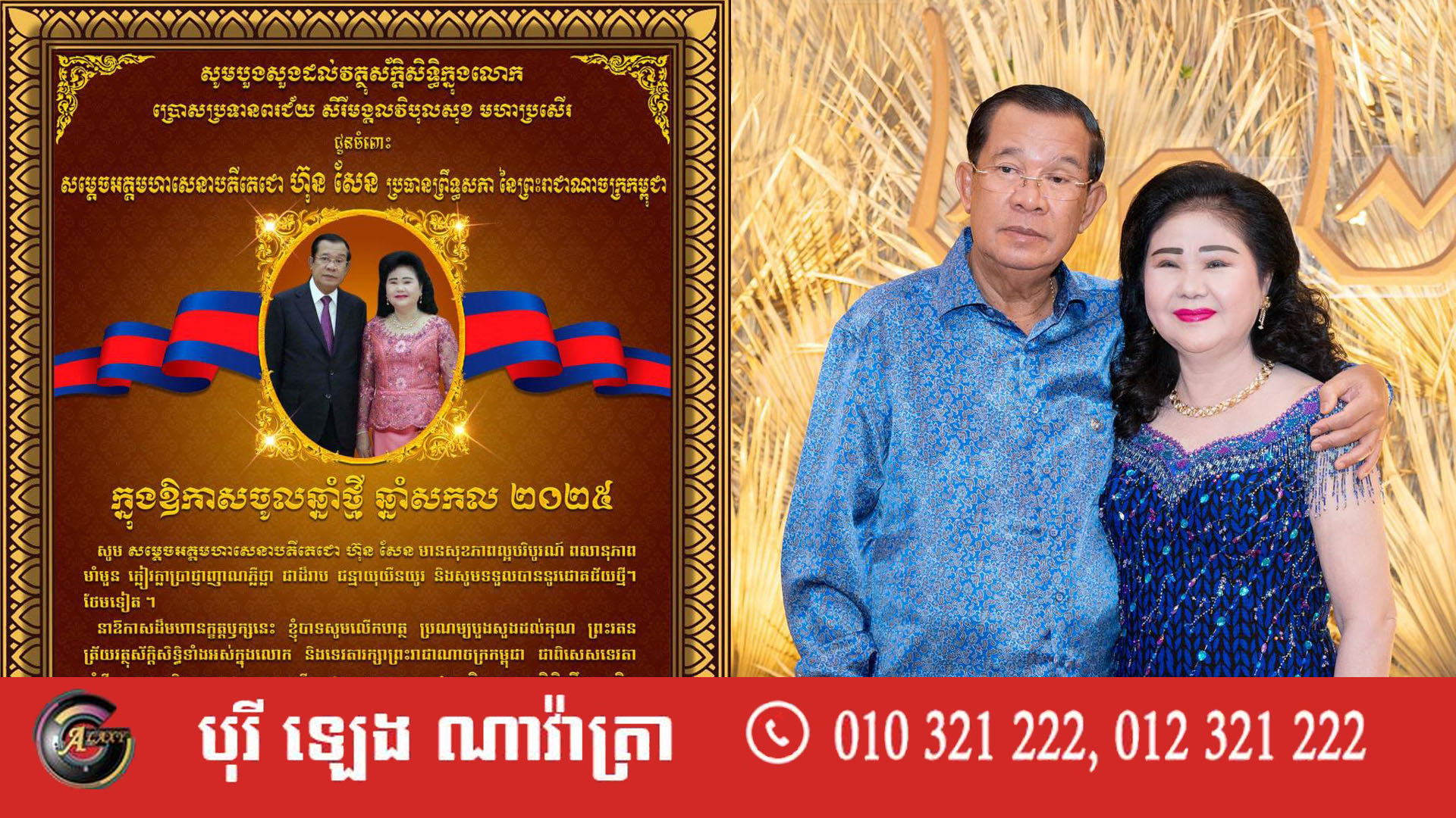 ក្នុងទិវាដ៏មហានក្ខត្តឫក្សប្រសើរថ្លៃថ្លានាឱកាសចូលឆ្នាំថ្មី ឆ្នាំសកល ២០២៥ ដែលនឹងឈានចូលមកដល់ នាថ្ងៃទី០១ ខែមករា ឆ្នាំ២០២៥ ខាងមុខនេះ យើងខ្ញុំសូមគោរពជូនពរជ័យ សិរីមង្គល មហាប្រសើរបំផុតជូនចំពោះ សម្តេចតេជោ និងសម្តេចកិត្តិព្រឹទ្ធបណ្ឌិត ព្រមទាំងបុត្រាបុត្រី និងចៅប្រុស ចៅស្រី ជាទីស្រឡាញ់ សូមប្រកបដោយសុខភាពល្អបរិបូរណ៍ ជន្មាយុយឺនយូរ កម្លាំងពលំមាំមួន បញ្ញាញាណវាងវៃភ្លឺថ្នា។