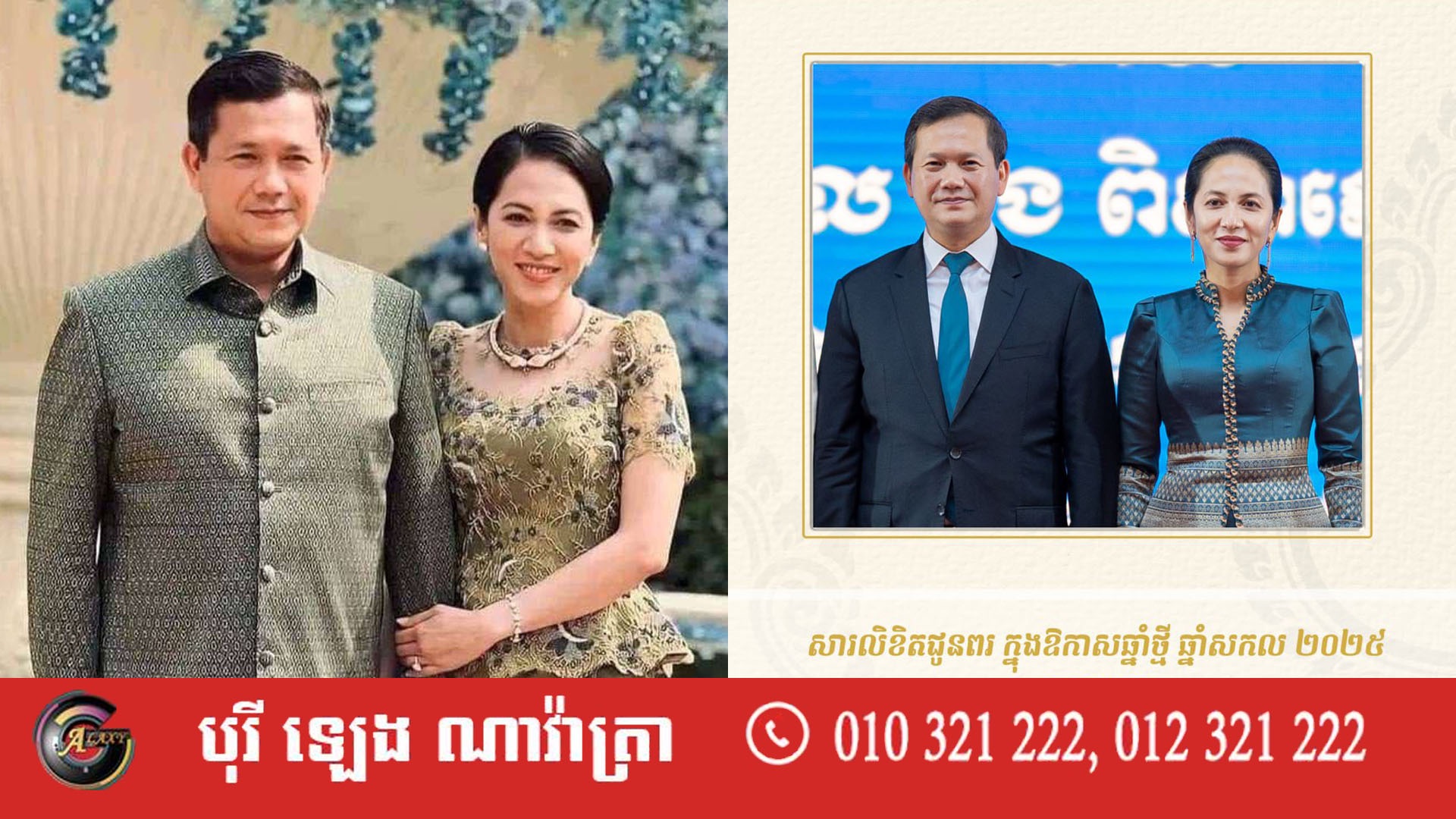 ក្នុងទិវាដ៏មហានក្ខត្តឫក្សប្រសើរថ្លៃថ្លានាឱកាសចូលឆ្នាំថ្មី ឆ្នាំសកល ២០២៥ ដែលនឹងឈានចូលមកដល់ នាថ្ងៃទី០១ ខែមករា ឆ្នាំ២០២៥ ខាងមុខនេះ យើងខ្ញុំសូមគោរពជូនពរជ័យ សិរីមង្គល មហាប្រសើរបំផុតជូនចំពោះ សម្តេចមហាបវរធិបតី និងលោកជំទាវបណ្ឌិត ព្រមទាំងបុត្រា បុត្រី ជាទីស្រឡាញ់ សូមប្រកបដោយសុខភាពល្អបរិបូរណ៍ ជន្មាយុយឺនយូរ កម្លាំងពលំមាំមួន បញ្ញាញាណវាងវៃភ្លឺថ្នា។