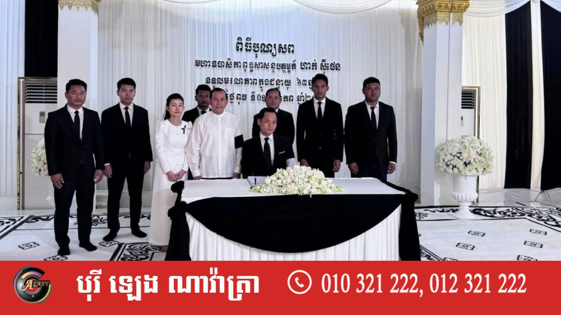 ក្នុងឱកាសដឹកនាំគណៈប្រតិភូនៅព្រឹកថ្ងៃសុក្រ ទី៣ ខែធ្នូ ឆ្នាំ២០២៥នេះ អ្នកឧកញ៉ា ឡេង ប្រុស បានពាំនាំនូវសារសូមចូលរួមរំលែកមរណទុក្ខដ៏សែនក្រៀមក្រំបំផុតជាមួយ ឯកឧត្តមរដ្ឋមន្រ្តី និងលោកជំទាវ ព្រមទាំងក្រុមគ្រួសារទាំងមូល និងសូមគោរពបួងសួងដល់ដួងវិញ្ញាណក្ខន្ធសពមហាឧបាសិកាពុទ្ធសាសនូបត្ថម្ភក៍ ហាក់ ស៊ីផេន សូមបានយោនយោគក្នុងទីឋានបរមសុខកុំបីឃ្លៀងឃ្លាតឡើយ។