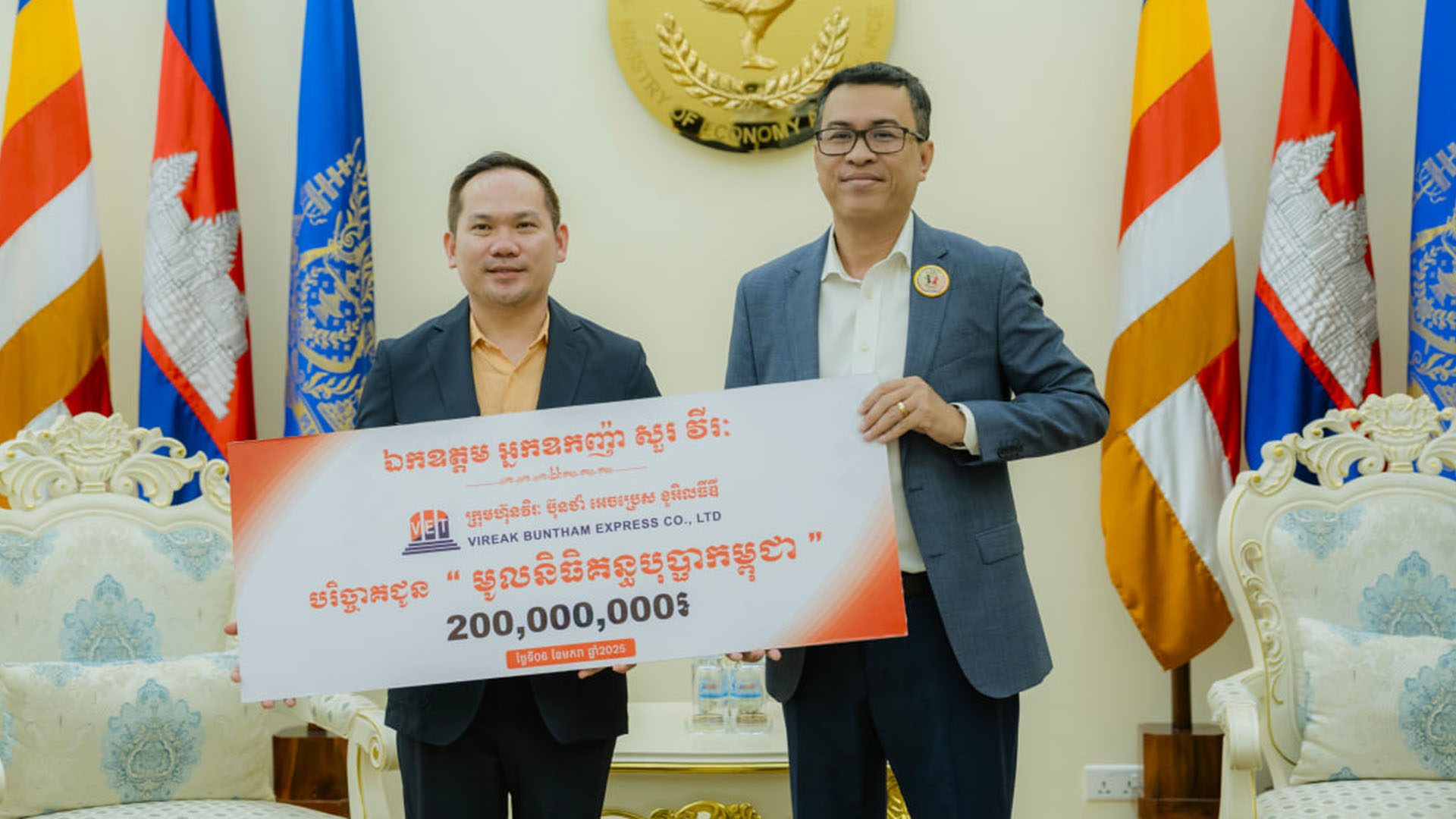 ឯកឧត្តម អ្នកឧកញ៉ា សួរ វីរៈ អគ្គនាយកក្រុមហ៊ុន វិរៈ ប៊ុនថាំ អេចប្រេស បានដឹកនាំ ថ្នាក់គ្រប់គ្រងជាន់ខ្ពស់នៃក្រុមហ៊ុន វិរ:ប៊ុនថាំ អេចប្រេស នាំយកថវិកាចំនួន ២០០រៀល បរិច្ចាគដល់មូលនិធិគន្ធបុប្ផាកម្ពុជា។