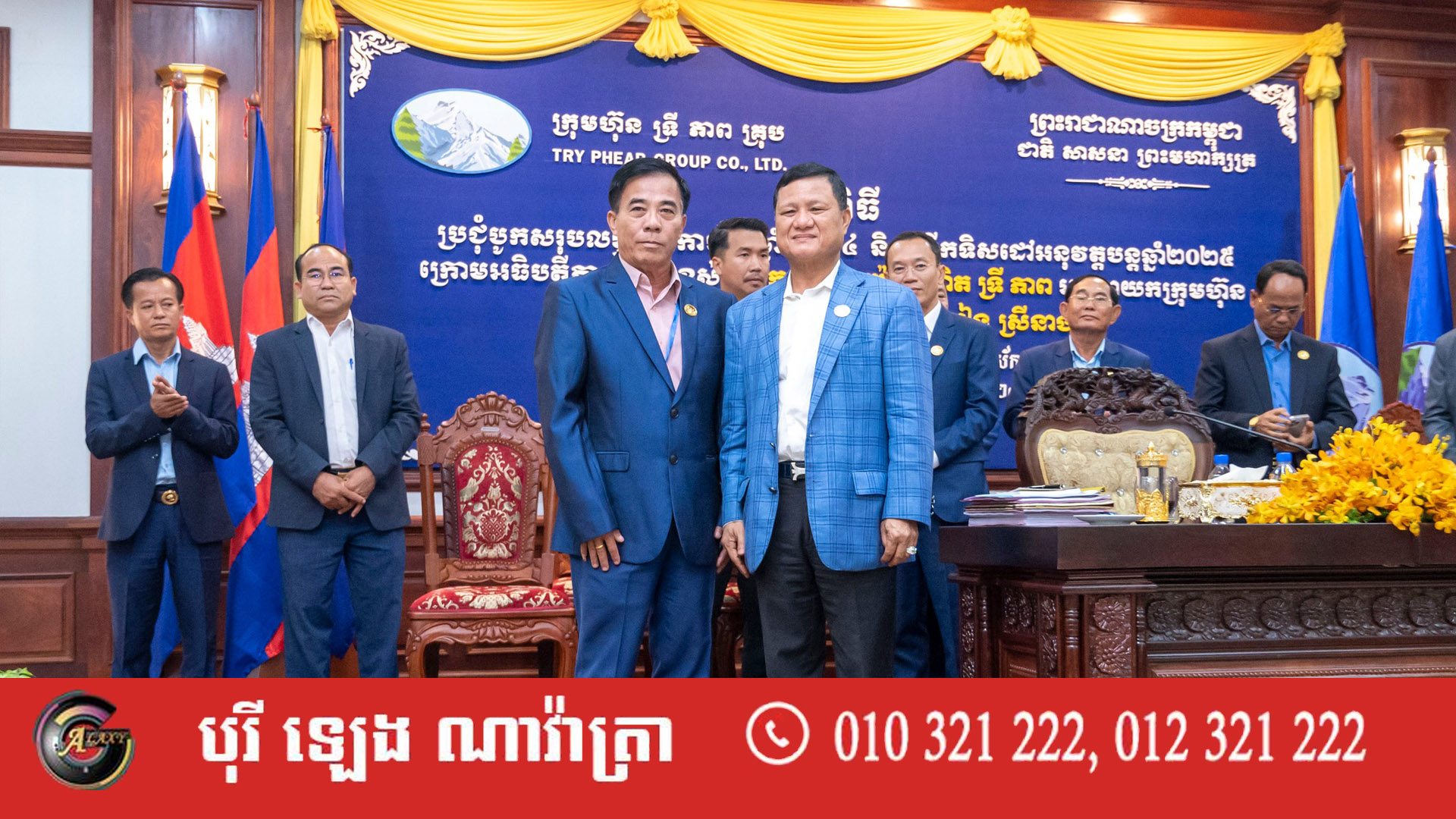១. លោកអ្នកឧកញ៉ា ទ្រី ភាព បំពាក់និមិត្តសញ្ញាក្រុមហ៊ុនធ្វើអំពីមាស ជូនដល់បុគ្គលិកឆ្នើមប្រចាំឆ្នាំ