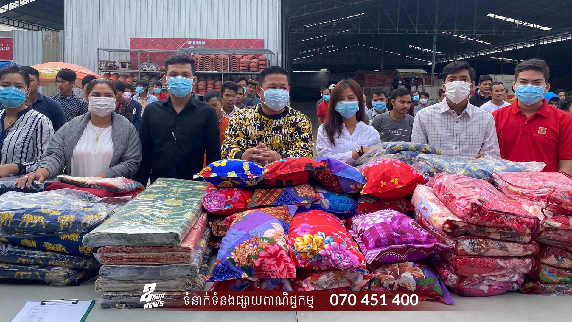 នៅព្រឹកនេះថ្ងៃទី២៣ ខែធ្នូ ឆ្នាំ២០២០នេះ ឧកញ៉ា ហ៊ួត ជា ម្ចាស់ក្រុមហ៊ុន ហ៊ួត ជា ផ្គត់ផ្គង់សម្ភារៈសំណង់ បាននាំយក ម៉ុង ភួយ កន្ទេល ខ្នើយ ដល់បុគ្គលិក។