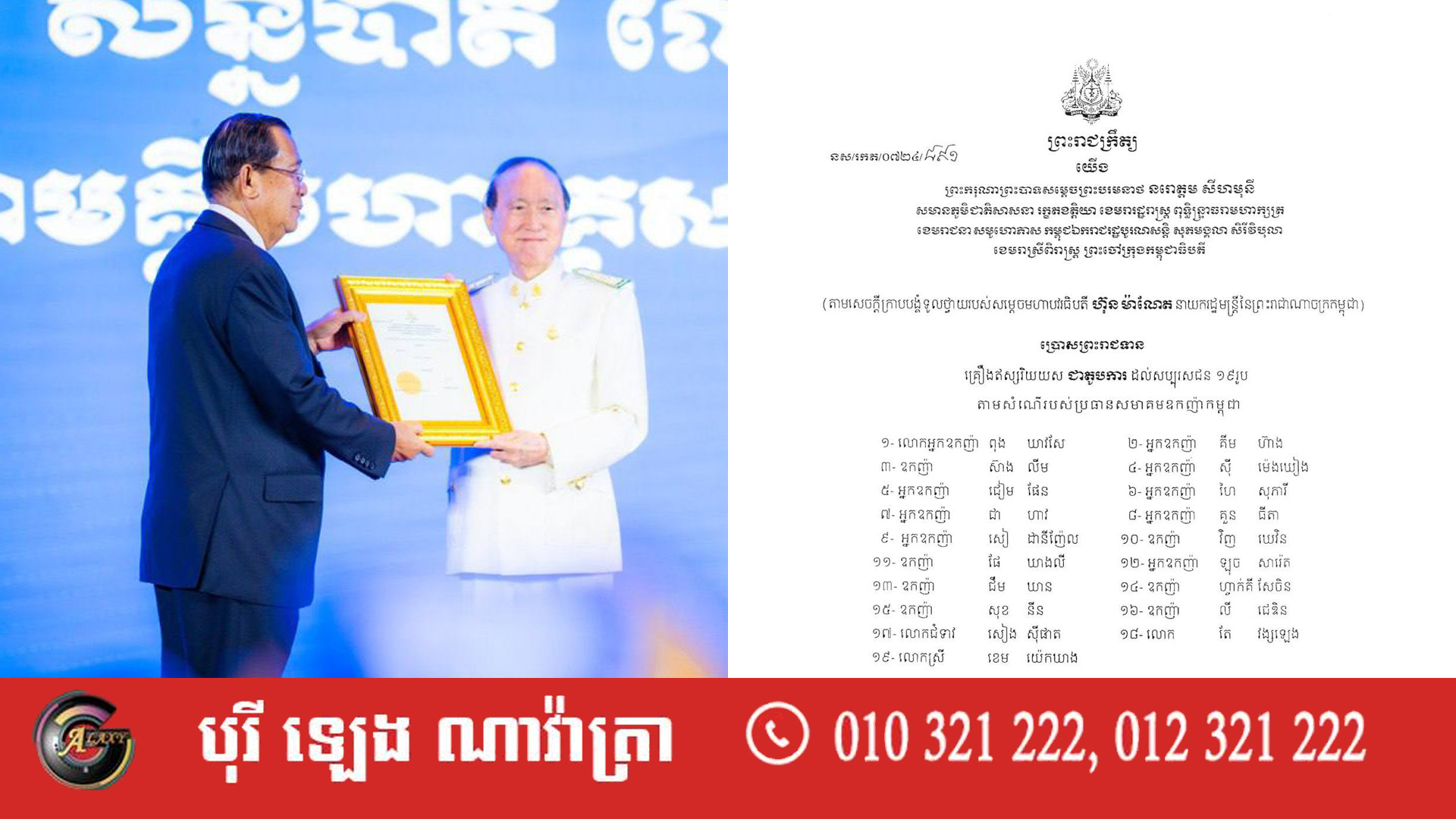 លោកអ្នកឧកញ៉ា អ្នកឧកញ៉ា និងឧកញ៉ាៗ ១៦រូប ទទួលបានគ្រឿងឥស្សរិយយស «ជាតូបការ»