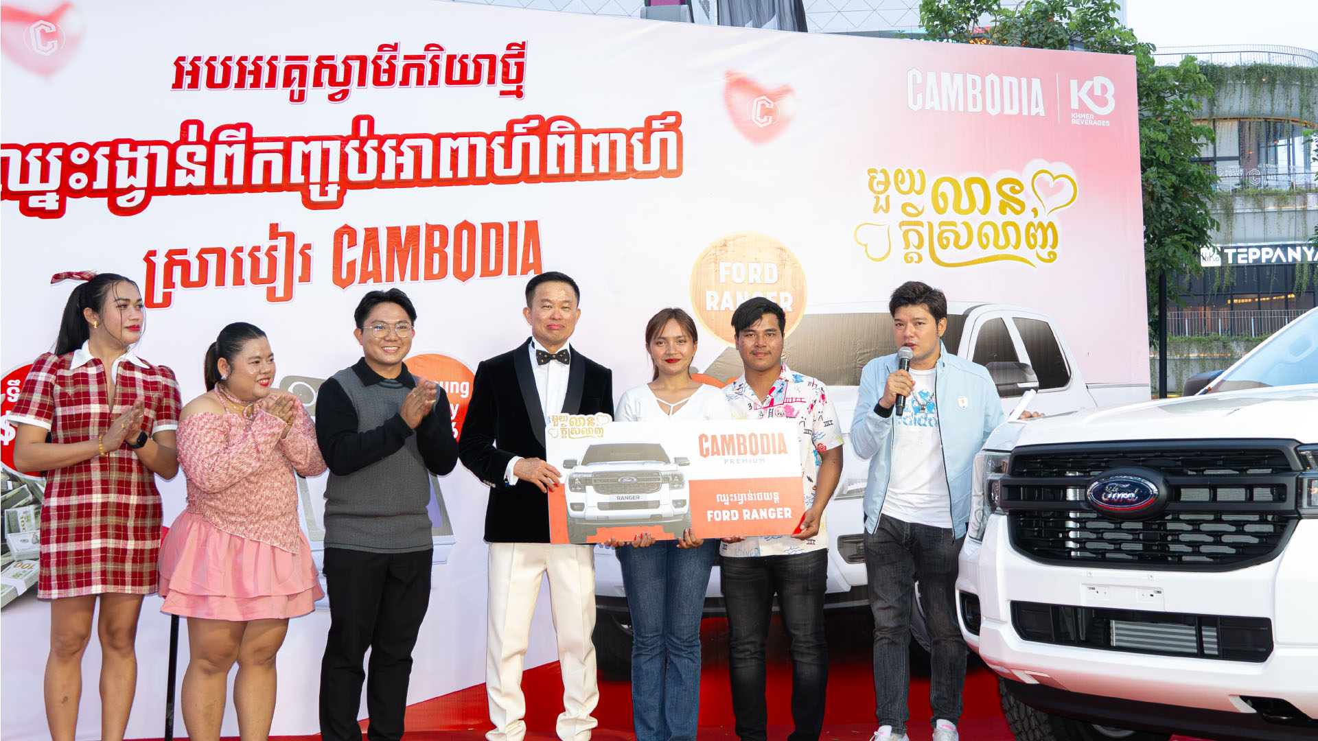 (ភ្នំពេញ)៖ ក្នុងឱកាសទិវានៃក្តីស្រលាញ់កន្លងទៅ អ្នកឧកញ៉ា លាង ម៉េង សហស្ថាបនិក និងជាប្រធានក្រុមអគ្គនាយកក្រុមហ៊ុន ខ្មែរ ប៊ែវើរីជីស ចំណាយពេលវេលាដ៏មមាញឹក ដើម្បីមកជួបសំណះសំណាលជាមួយគូស្វាមីភរិយាមហាសំណាងទាំង ១០១ គូ ដែលបានឈ្នះរង្វាន់ពីកញ្ចប់អាពាហ៍ពិពាហ៍ពី ស្រាបៀរ កម្ពុជា ដោយក្នុងនោះមាន រង្វាន់រថយន្ត Ford Ranger ចំនួន ១ រង្វាន់, រង្វាន់ទូរស័ព្ទ Samsung Galaxy Z Flip 6 ចំនួន ៥០ រង្វាន់, និងរង្វាន់ទឹកប្រាក់ចំនួន ៥០ រង្វាន់។