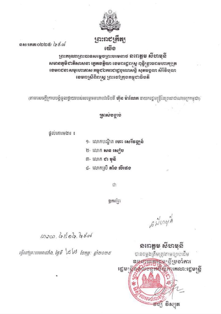 ព្រះករុណាព្រះបាទសម្តេចព្រះបរមនាថ នរោត្តម សីហមុនី ព្រះមហាក្សត្រ នៃព្រះរាជាណាចក្រកម្ពុជា បានប្រោសព្រះរាជទានត្រាស់បង្គាប់ផ្តល់គោរមងារ លោកស្រី តាំង លីផេង ជា «ឧកញ៉ា» នៅថ្ងៃទី២២ ខែកុម្ភៈ ឆ្នាំ២០២៥ រួមជាមួយធុរជនចំនួន ៣រូបទៀត តាមសេចក្តីក្រាបបង្គំទូលថ្វាយរបស់សម្តេចធិបតី ហ៊ុន ម៉ាណែត នាយករដ្ឋមន្ត្រីកម្ពុជា។