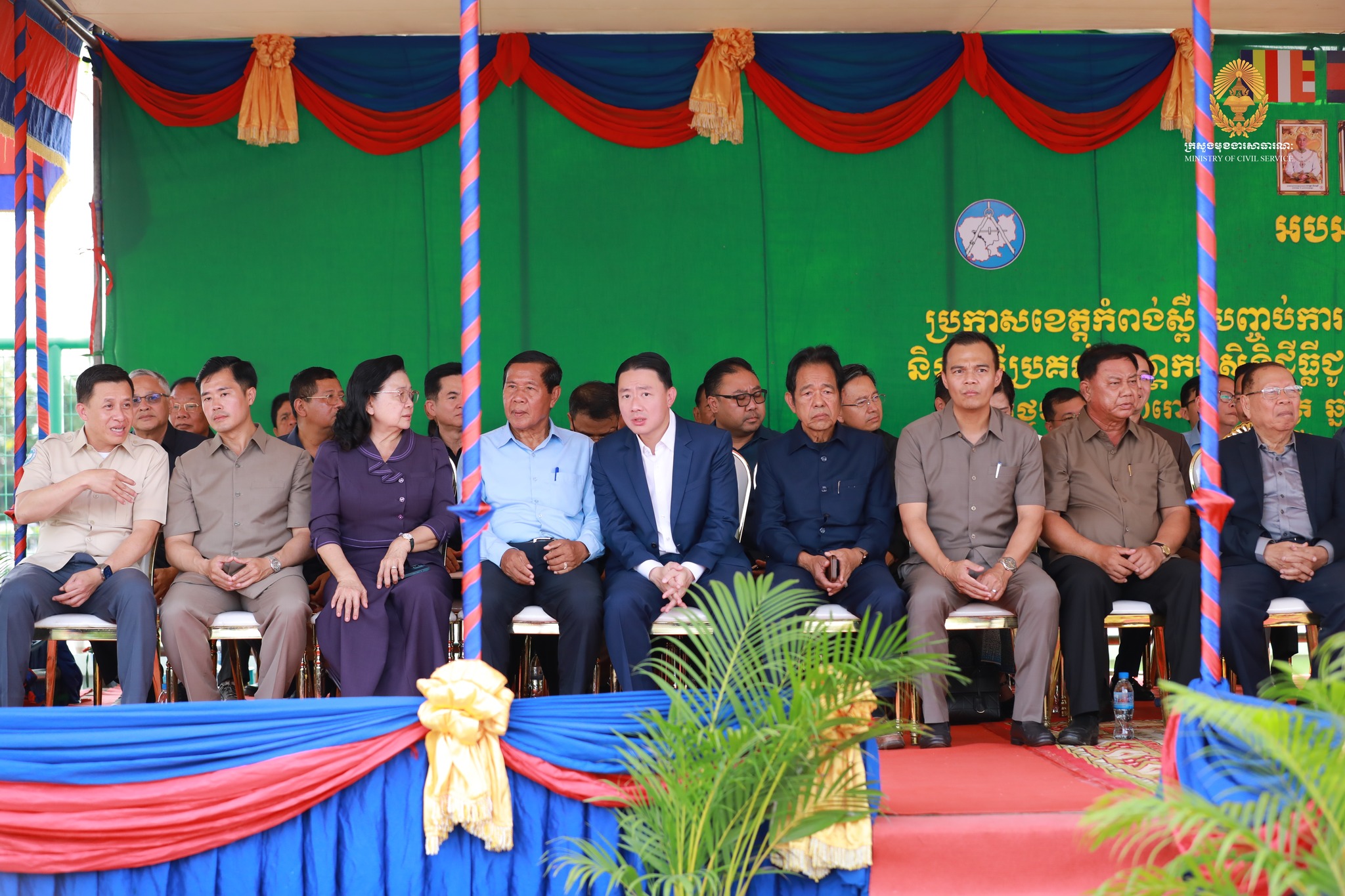 ពិធីខាងលើនេះប្រព្រឹត្តទៅក្រោមគណៈអធិបតីភាព ឯកឧត្តម ហ៊ុន ម៉ានី ឧបនាយករដ្ឋមន្រ្តី រដ្ឋមន្រ្តីក្រសួងមុខងារសាធារណៈ និងជាប្រធានក្រុមការងាររាជរដ្ឋាភិបាលចុះមូលដ្ឋានខេត្តកំពង់ស្ពឺ និងឯកឧត្តម សាយ សំអាល់ ឧបនាយករដ្ឋមន្ត្រី រដ្ឋមន្ត្រីក្រសួងរៀបចំដែនដី នគរូបនីយកម្ម និងសំណង់ ព្រមទាំងមានការអញ្ជើញចូលរួមពីឯកឧត្ដម លោកជំទាវសមាជិកព្រឹទ្ធសភា រដ្ឋសភា ឯកឧត្តម លោកជំទាវ លោក លោកស្រី ក្រុមការងាររាជរដ្ឋាភិបាលចុះជួយមូលដ្ឋានខេត្ត ក្រុង ស្រុក នៃខេត្តកំពង់ស្ពឺ ក្រុមប្រឹក្សាខេត្ត គណៈអភិបាលខេត្ត ក្រុង ស្រុក ខណ្ឌ ថ្នាក់ដឹកនាំ និងមន្រ្តីរាជការចំណុះរដ្ឋបាលខេត្តគ្រប់លំដាប់ថ្នាក់ ក្រុមវាស់របស់មន្ទីររៀបចំដែនដី នគរូបនីយកម្ម និងសំណង់រាជធានីភ្នំពេញ និងខេត្តកំពង់ស្ពឺ ព្រមទាំងបងប្អូនប្រជាពលរដ្ឋស្រុកសំរោងទង ស្រុកសាមគ្គីមុនីជ័យ និងក្រុងច្បារមន សរុបចំនួនប្រមាណ ៣,២៦០នាក់។