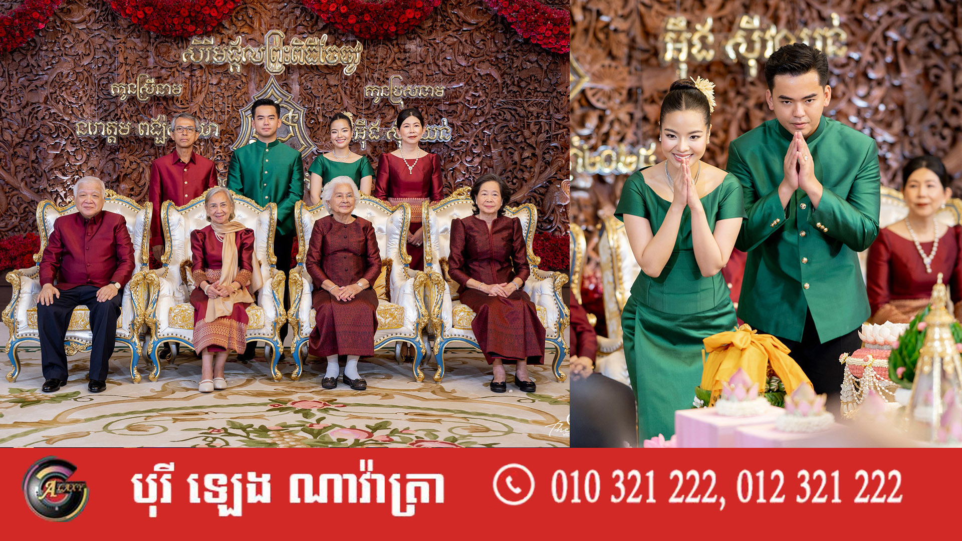 ពិធីសិរីមង្គលសែរាជវង្សានុវង្សខ្មែរដ៏ធំនេះ កូនស្រីនាម នរោត្តម ពង្សសូរិយា ជាព្រះបុត្រីរបស់ សម្តេចក្រុមព្រះ នរោត្តម ចក្រពង្ស និងកូនប្រុសនាម អុឹង ស៊ីវឈន់ ជាកូនប្រុសរបស់ អ្នកឧញ៉ា អុឹង ប៊ុនហ៊ូវ និងលោកជំទាវ ហេង សុខា។