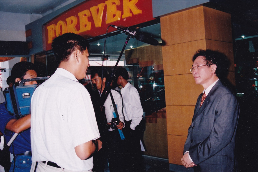 លោកអ្នកឧកញ៉ាបណ្ឌិត ពុង ឃាវសែ ក្នុងពិធីបើកសម្ពោធផ្សារទំនើបសូរិយាក្នុងឆ្នាំ ២០០៣