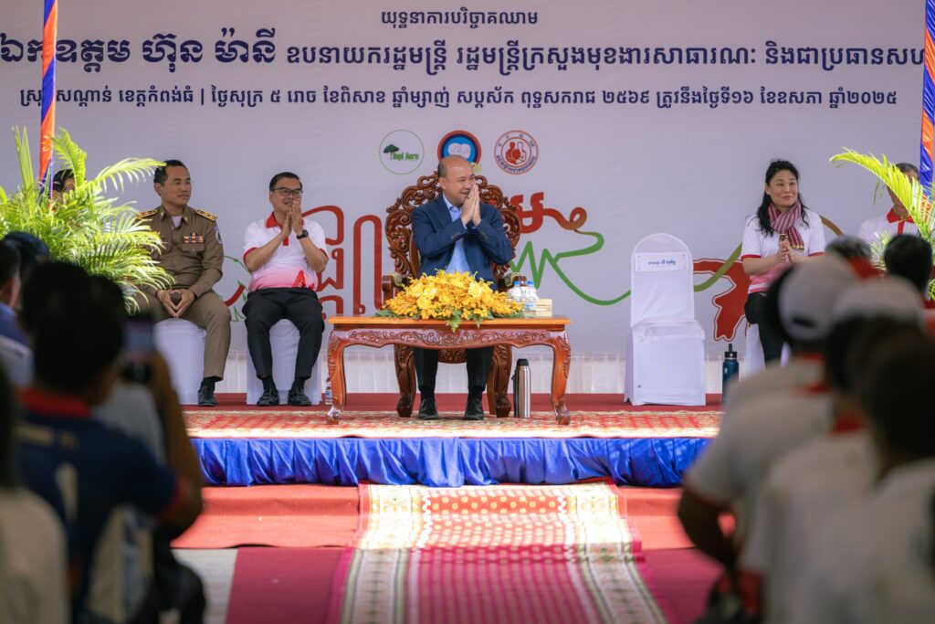 ពិធីខាងលើនេះ ត្រូវបានធ្វើឡើងក្រោមអធិបតីភាព ឯកឧត្តម ហ៊ុន ម៉ានី ឧបនាយករដ្ឋមន្ត្រី រដ្ឋមន្ត្រីក្រសួងមុខងារសាធារណៈ និងជាប្រធានសហភាពសហព័ន្ធយុវជនកម្ពុជា ព្រមទាំងមានការអញ្ជើញចូលរួមពី ឯកឧត្តម នួន ផារ័ត្ន អភិបាលខេត្តកំពង់ធំ មន្ត្រីរាជការ លោកគ្រូ អ្នកគ្រូ និងសិស្សានុសិស្សជាច្រើនរូបទៀត។