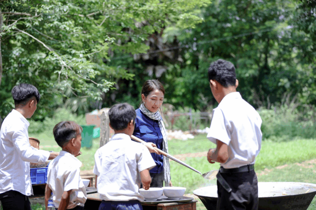 ដូចសព្វមួយដង លោកឧកញ៉ា ឡេង និមល និងលោកជំទាវ តែងតែសួរសុខទុក្ខដល់ក្មួយៗពីដំណើរការនៃការសិក្សា ការរស់នៅ បន្ថែមពីនោះ លោកឧកញ៉ាក៏បានចូលធ្វើម្ហូបដោយផ្ទាល់ដៃ ដួសដាក់ចាន លើកជូនប្អូនៗហូបផងដែរ។